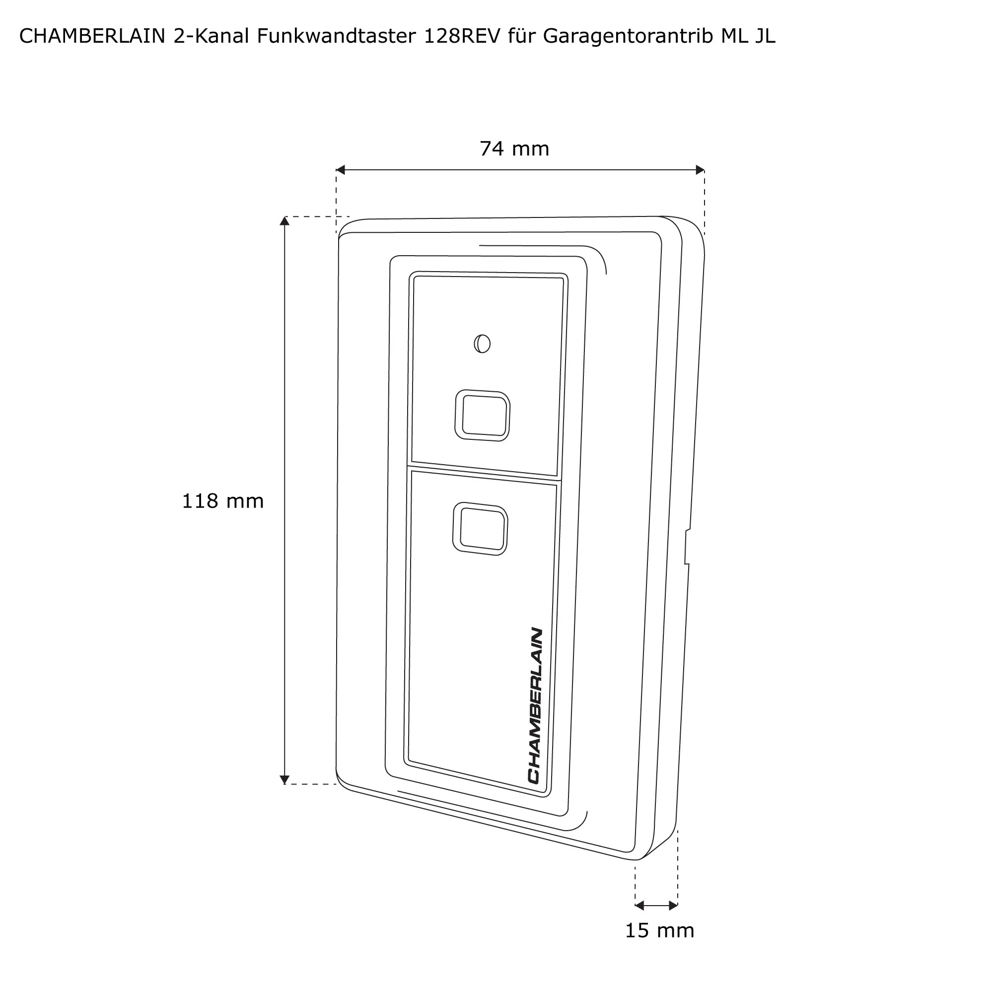 Der Chamberlain Garagentor-Funkwandtaster unterstützt Torantriebe von JAROLIFT (JL-600N, JL-800N und JL1000N) und Chamberlain (ML510EV, ML700EV und ML1000EV). Das System funktioniert ohne Verkabelung mit Funktechnologie und Batteriebetrieb. Die Installation des 128REV erfolgt mit beiliegenden Befestigungsschrauben per Aufputz-Montage. Einmal montiert, bedienst du mit dem 2-Kanal-Funkwandtaster bis zu zwei Garagentore.