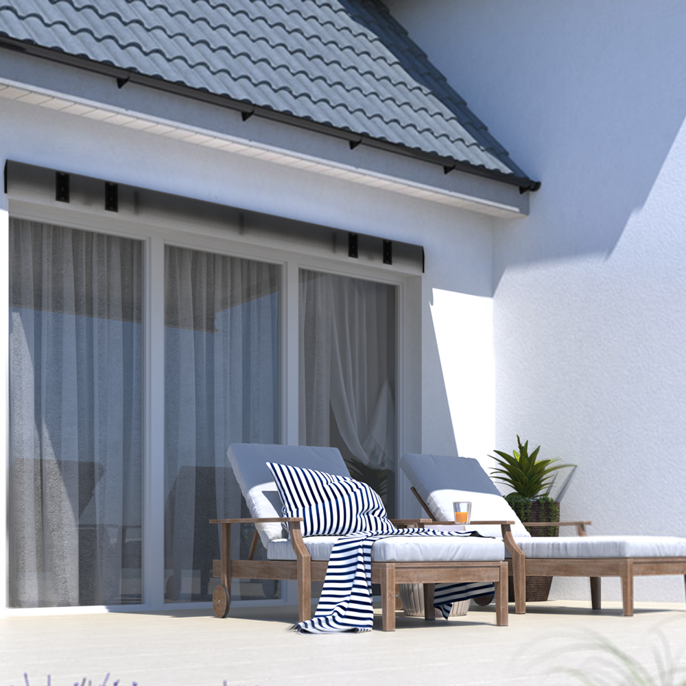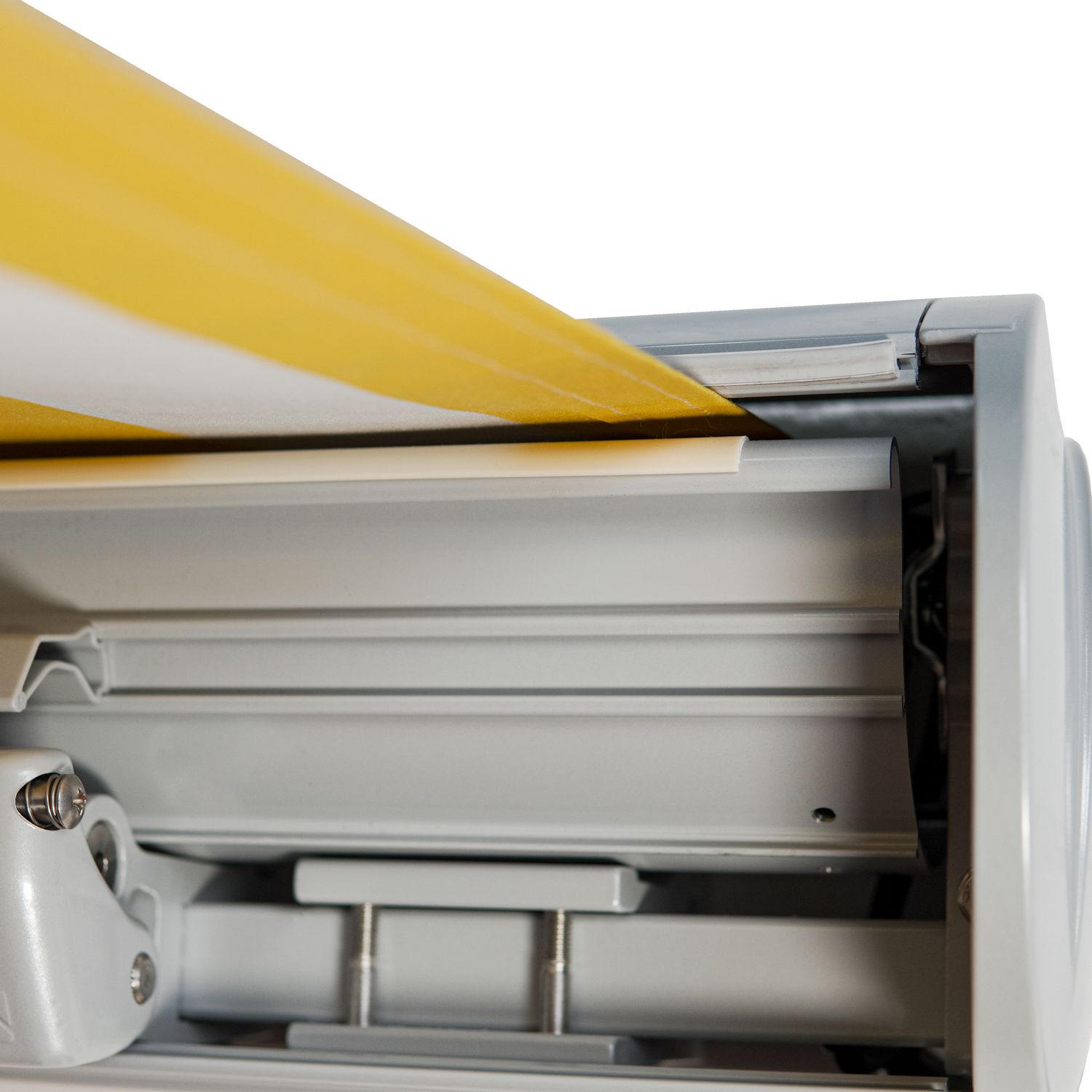 - Optional: magnetische Leiste für den Stoff, die das Abnehmen der Markise von der Rolle ohne Demontage ermöglicht