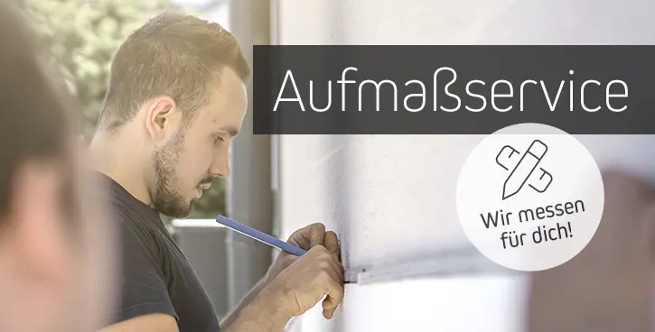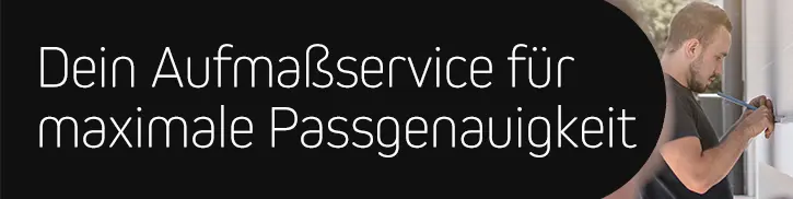 Damit dein maßgefertigtes Wunschprodukt perfekt passt, bieten wir dir vor deiner Bestellung unseren kostenfreien telefonischen Aufmaßservice oder unseren günstigen Vor-Ort-Service für nur 39 € an. So kannst du sicher sein, dass alles genau stimmt.