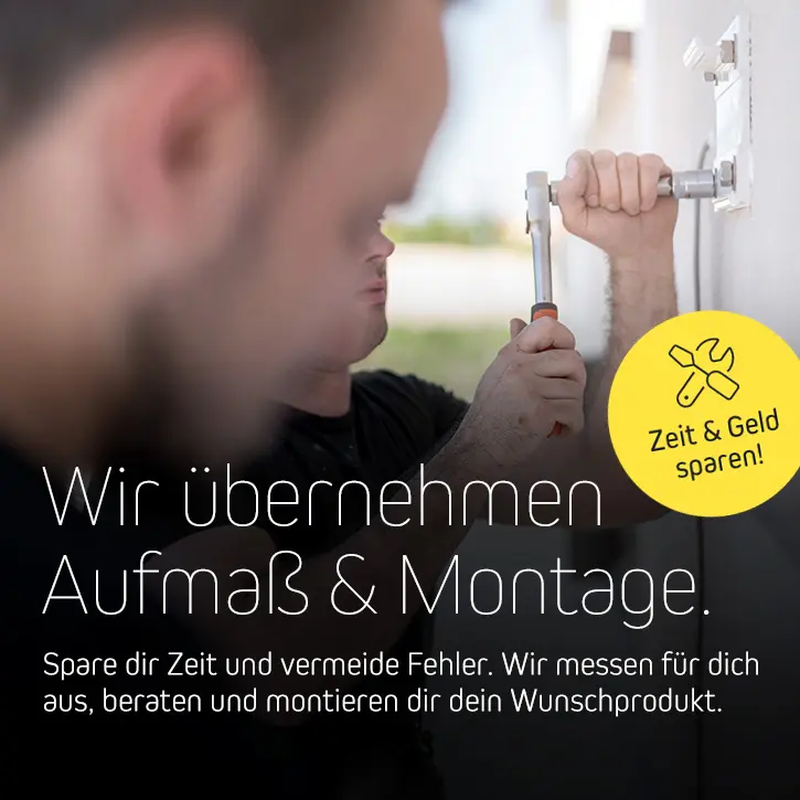 Durch unsere optimierten Online-Prozesse können wir hochwertige Maßanfertigungen und professionelle Montage zu besonders attraktiven Konditionen anbieten – ohne Kompromisse bei Qualität oder Service. - Passgenaugarantie, wenn du den Aufmaß- UND den Montageservice buchst: Es passt oder wir tauschen gratis aus!