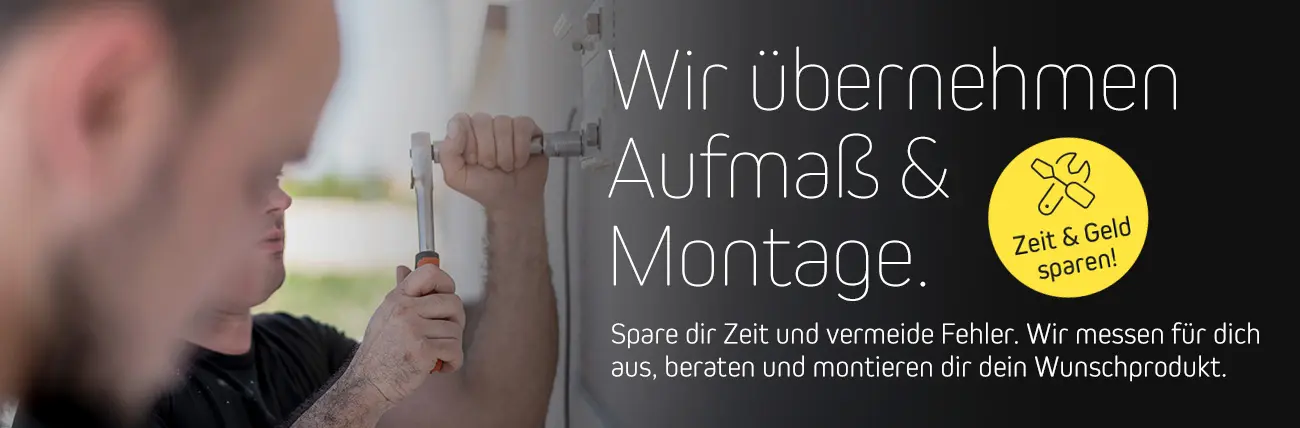 - Aufmaßservice für nur 39 € inkl. An- und Abfahrt, ohne versteckte Kosten – bei Buchung unseres Montageservices werden die Kosten des Aufmaßservices angerechnet.