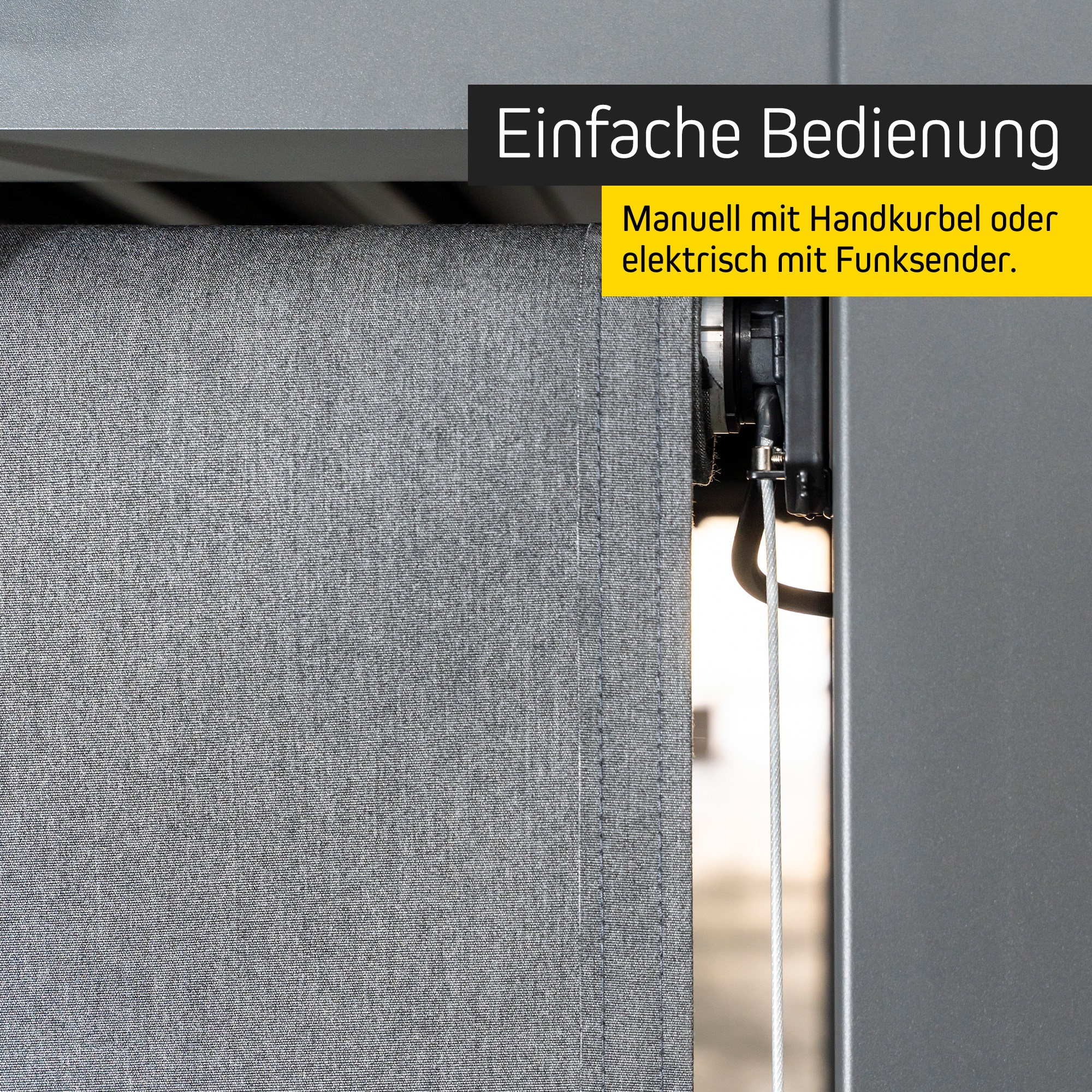 Einfache Bedienung mit Kurbel oder Funkmotor