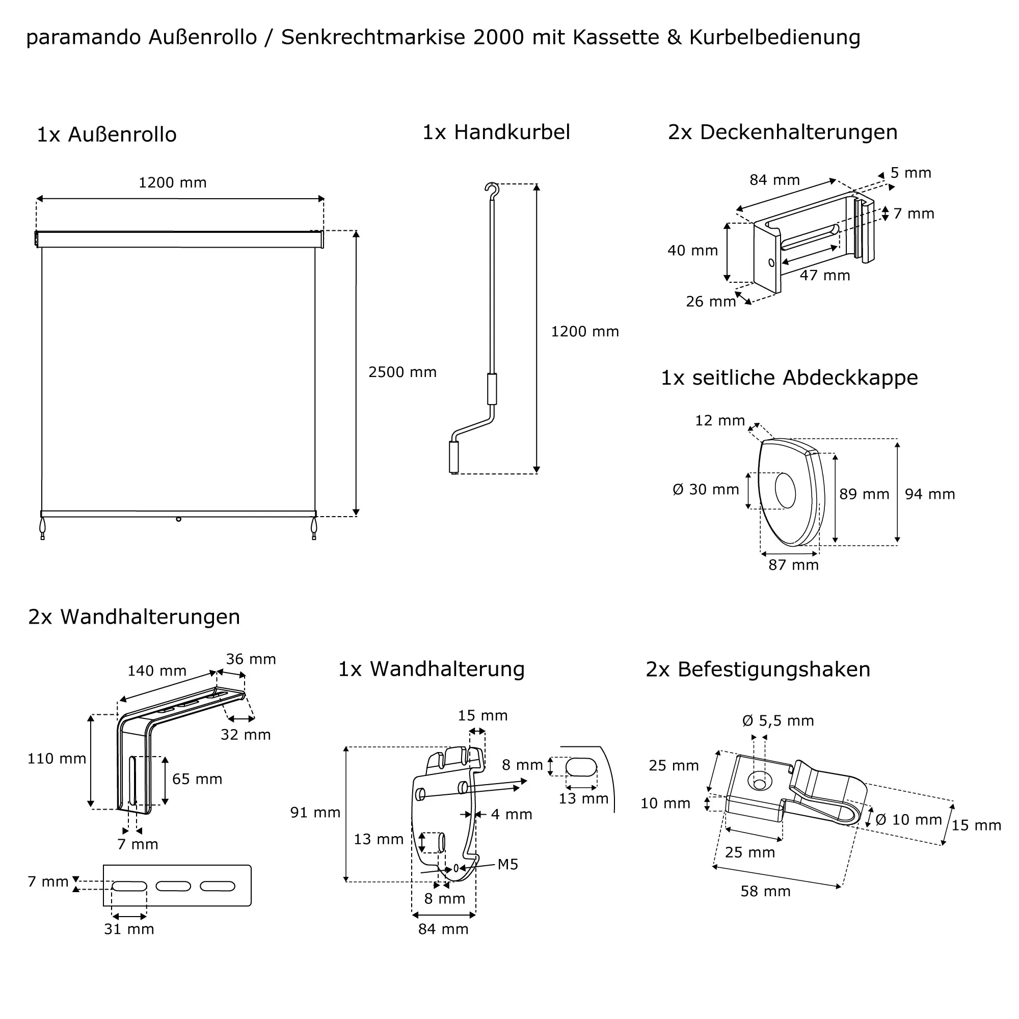 | Produktbezeichnung: | Außenrollo - Senkrechtmarkise 2000 mit Kassette & Kurbel | 1,2 x 2,5 m, anthrazit/grau |
