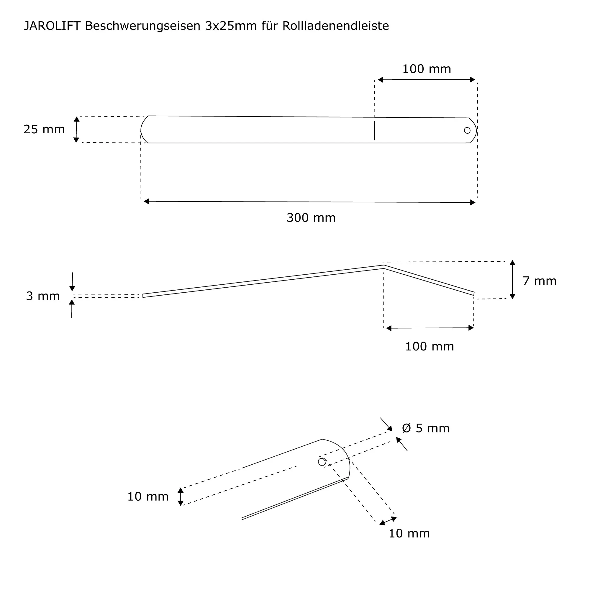| Produktbezeichnung: | Beschwerungseisen 3 x 25 mm für Rollladenendleiste | 300 mm Länge |