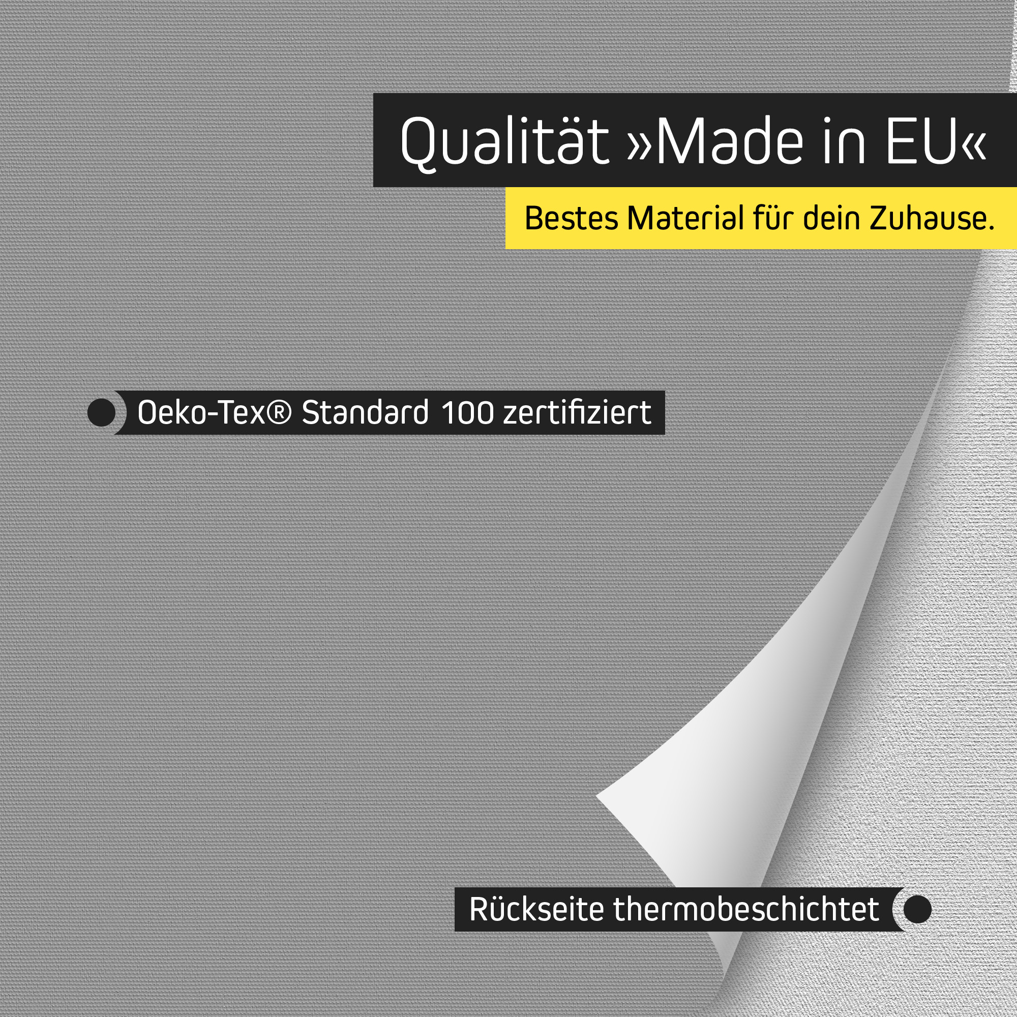 Das Gewebe ist Oeko-Tex Standard 100 zertifiziert – für dich und deine Familie also absolut unbedenklich. Und falls das Rollo mal etwas Pflege braucht: Ein leicht angefeuchtetes Tuch genügt völlig. Da der Stoff auch für Feuchträume geeignet ist, kannst du das Rollo bedenkenlos in Küche oder Bad einsetzen.