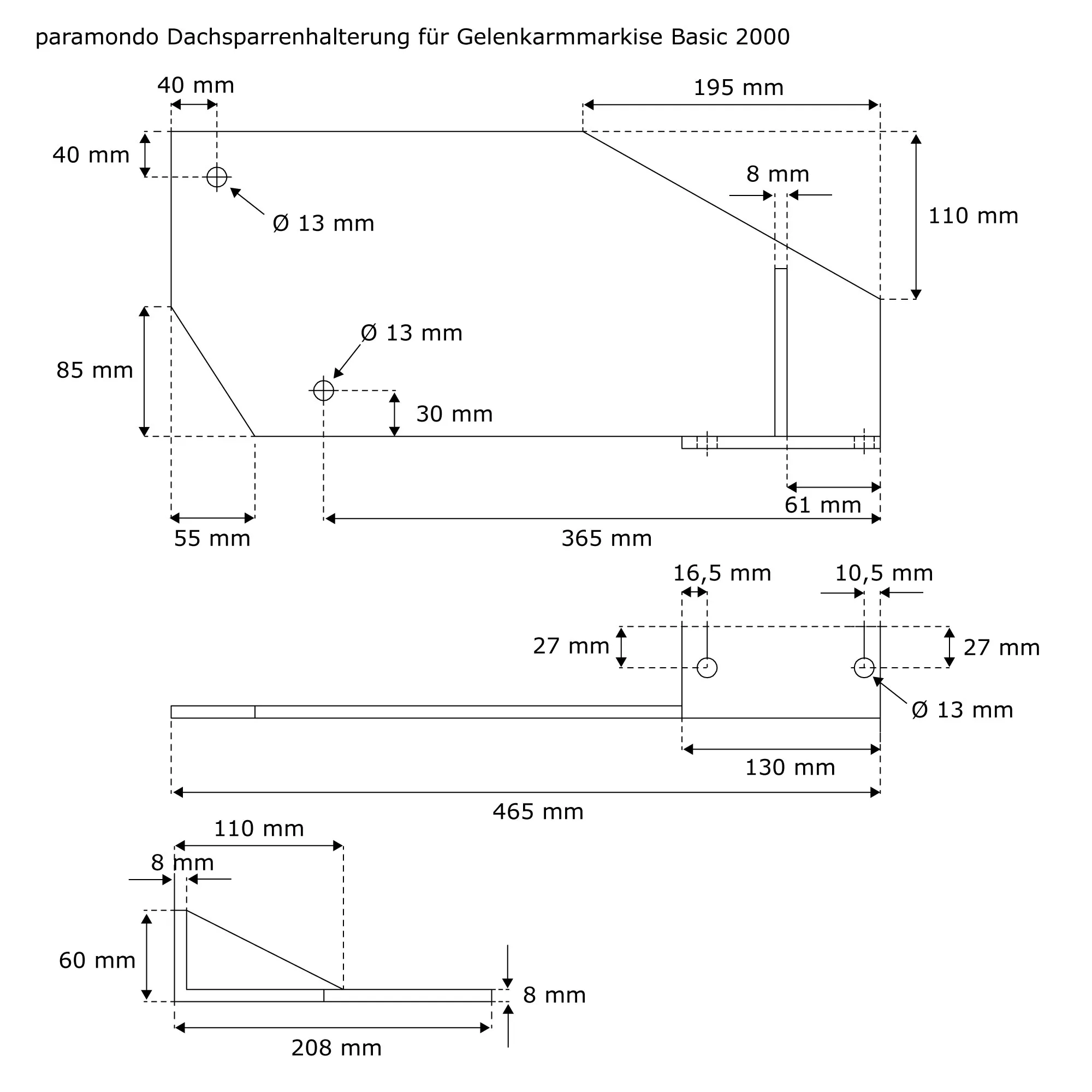 Die Dachsparrenhalter sind passgenau für die paramondo Gelenkarmmarkise Basic 2000 gefertigt.