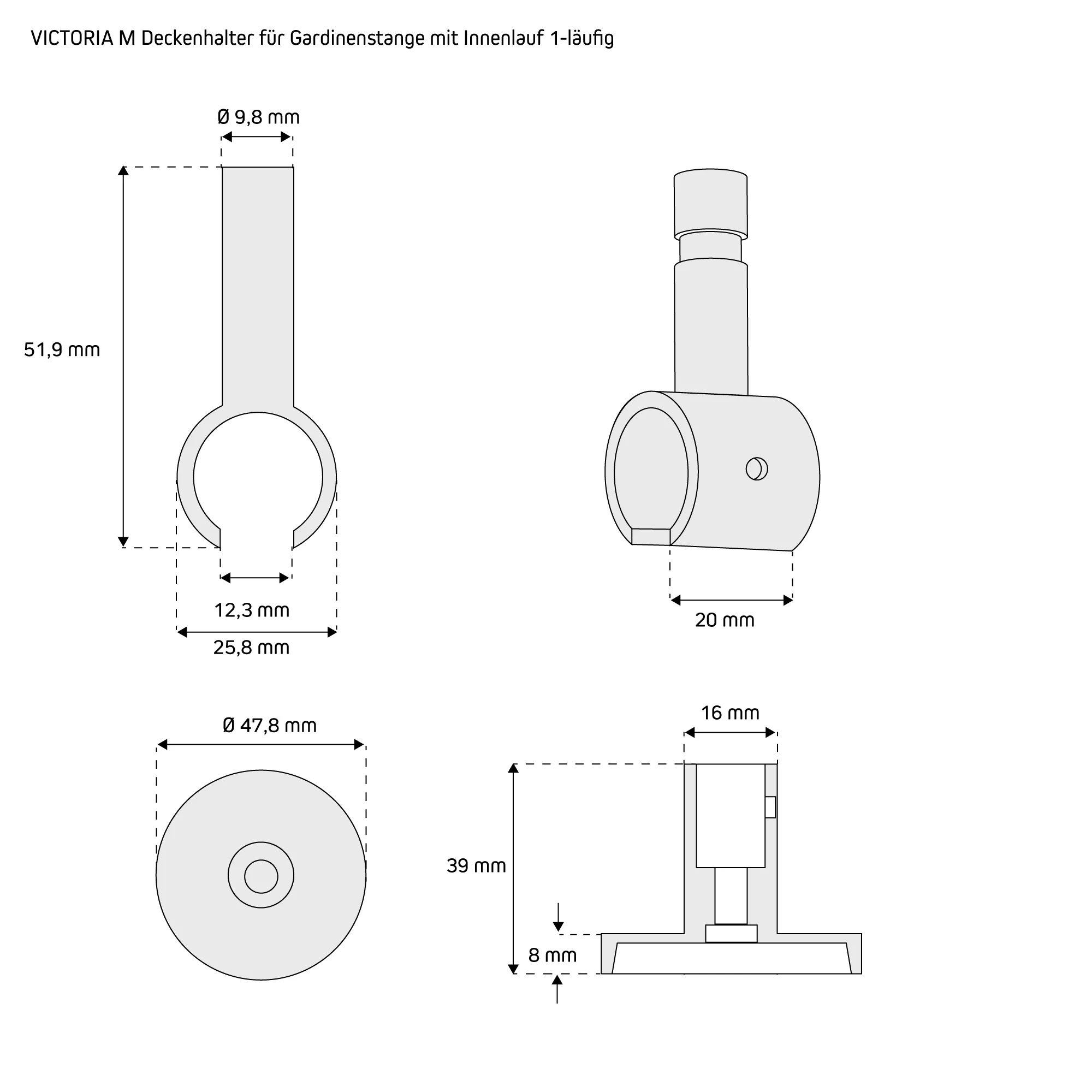 | Produktbezeichnung: | Deckenhalter für Gardinenstange mit Innenlauf | ⌀ 19 mm, silber, 1-läufig |