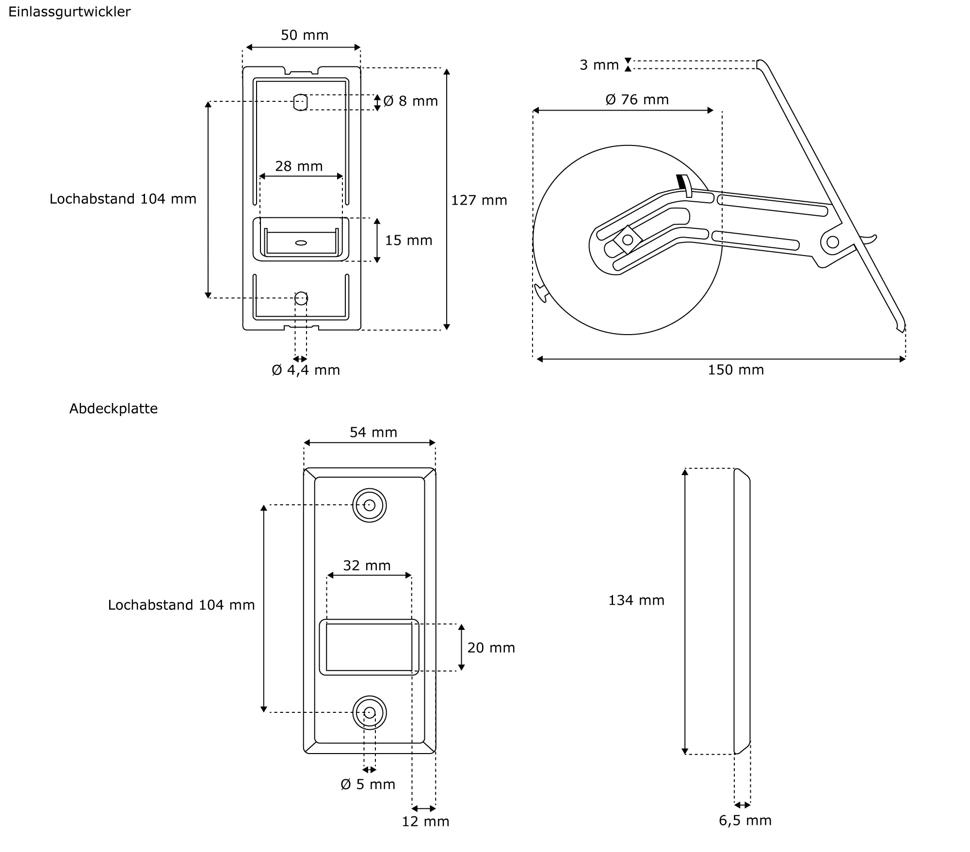 Die im Lieferumfang ebenfalls enthaltene Abdeckplatte, passend zum Lochabstand des Einlass-Gurtwicklers, ist aus hochwertigem Kunststoff in der Farbe weiss.