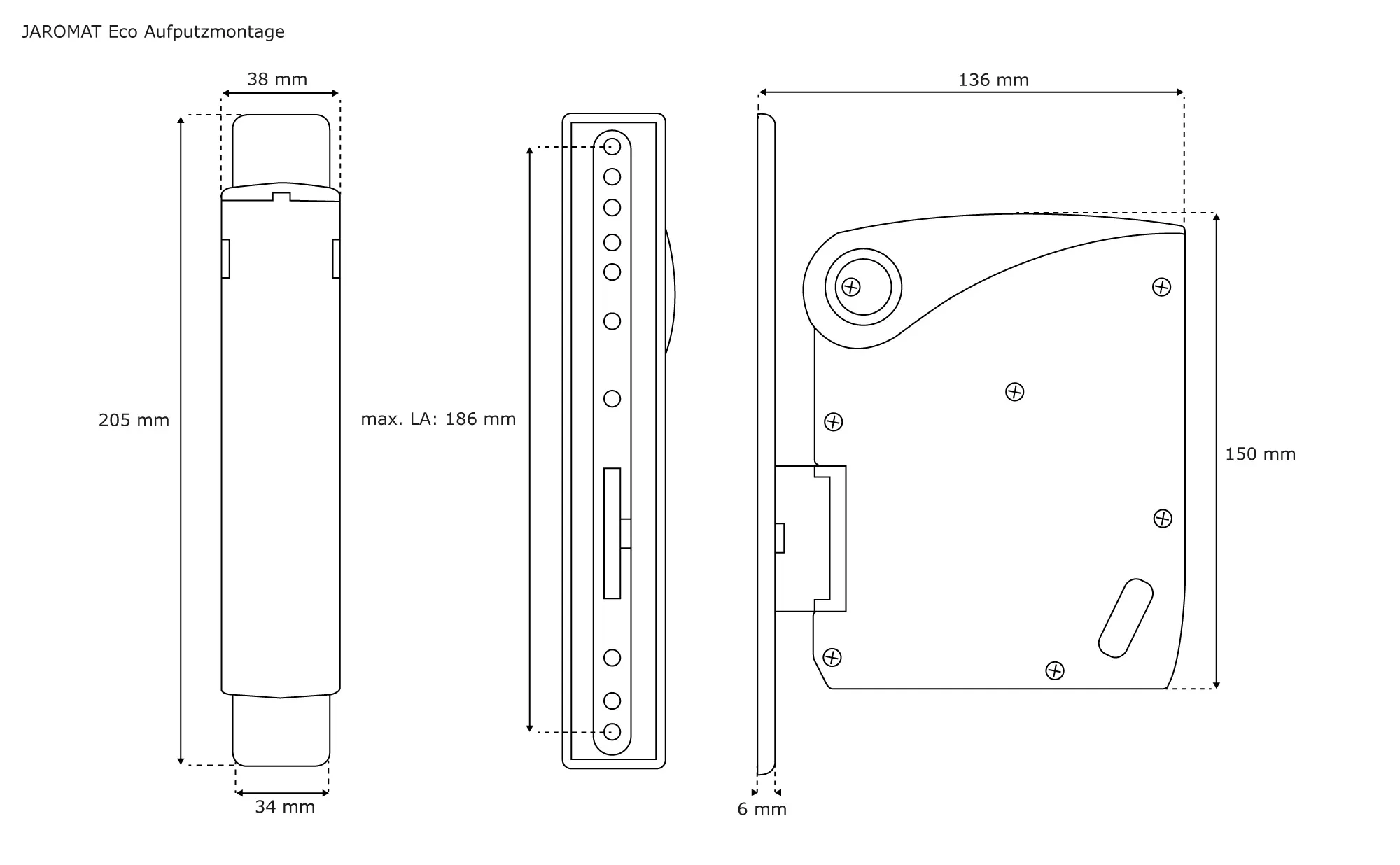 | Abstand Befestigungsschrauben: | 186 mm |