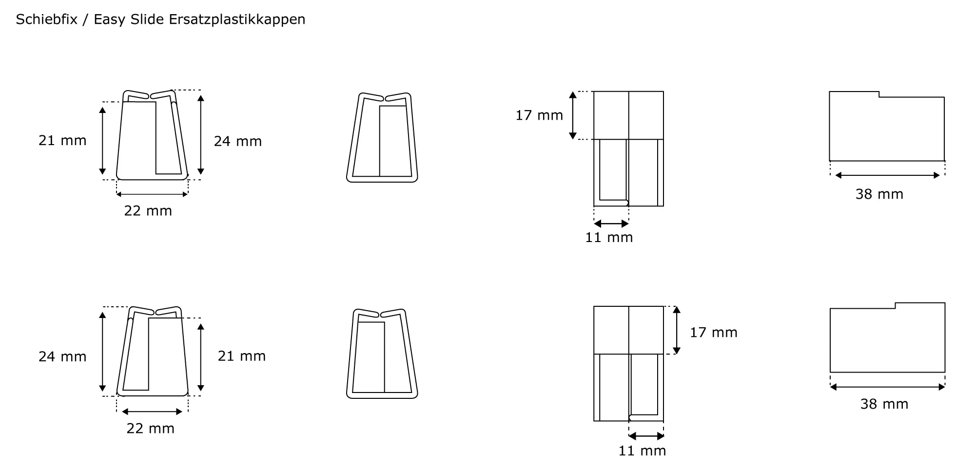 | Produktbezeichnung: | Ersatzplastikkappen für Insektenschutzrahmen Schiebfix / Easy Slide | schwarz, 4 Stück |