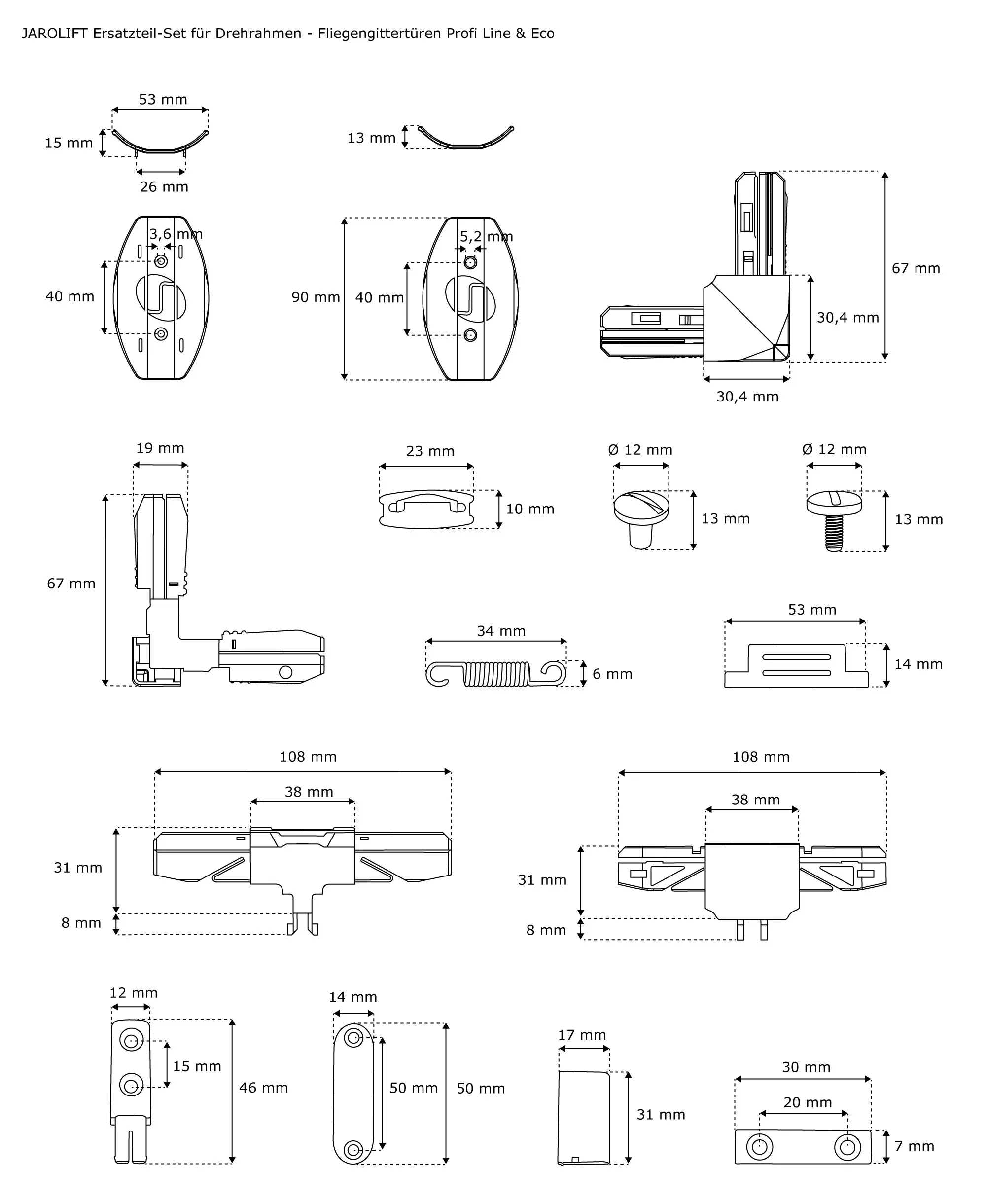 Mit unserem Ersatzteilset kannst du problemlos defekte Komponenten an deiner JAROLIFT Fliegengittertüre Profi Line oder deinem Drehrahmen Eco austauschen. Du erhältst das Kunststoff-Set in den Farben Schwarz oder Weiß.