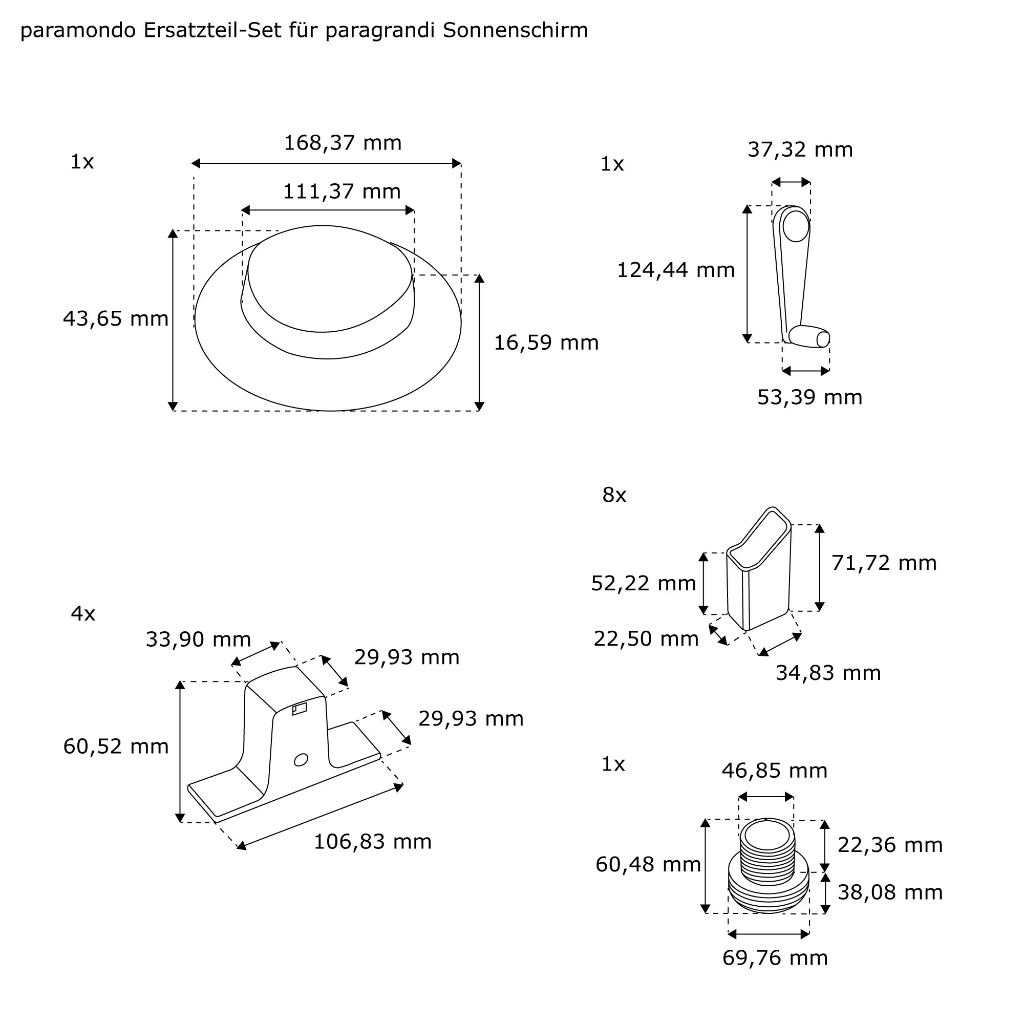 Das paramondo Ersatzteil-Set für paragrandi Sonnenschirme ist vom Originalhersteller produziert. Damit passt garantiert alles genau so, wie es soll!