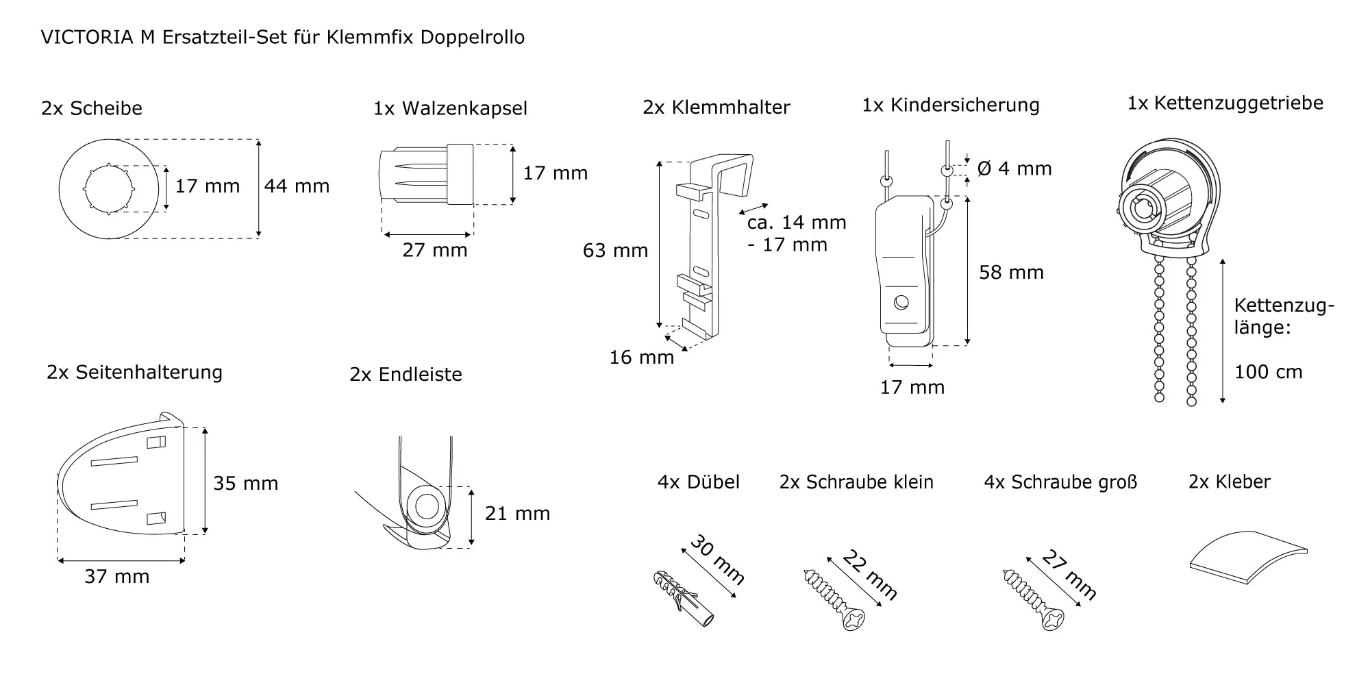 Produktbezeichnung: Ersatzteil-Set komplett für Klemmfix Doppelrollo / Duorollo | braun