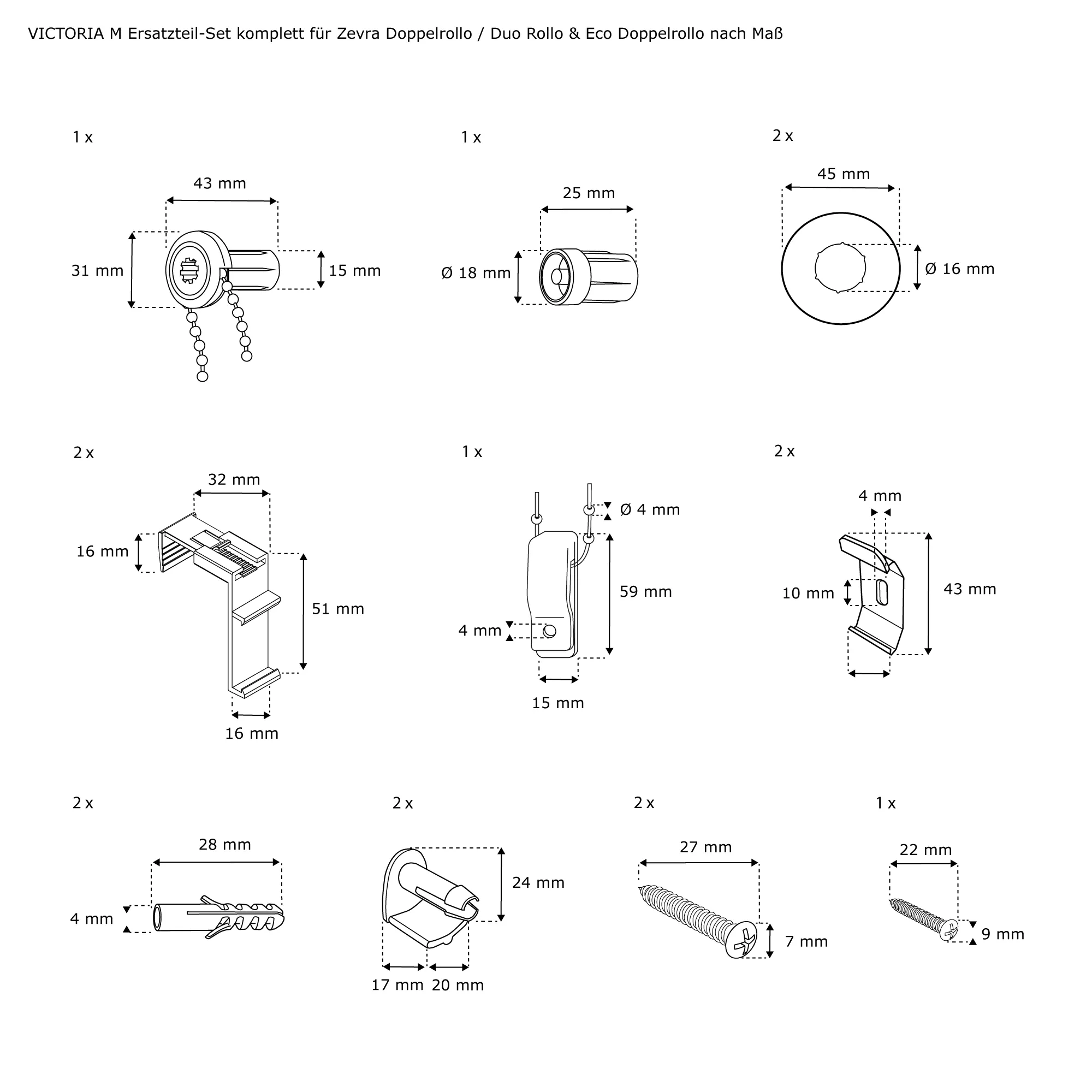 - Komplettes Ersatzteil-Set für Zevra & Eco Doppelrollos nach Maß