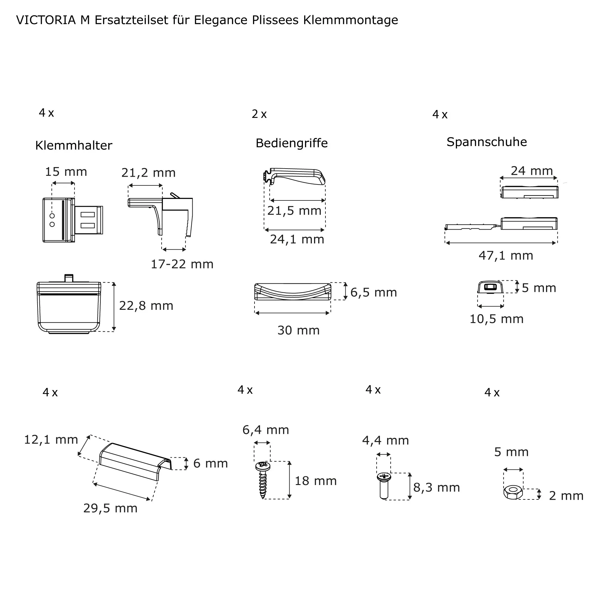 | Produktbezeichnung: | Ersatzteilset für Elegance Plissees | Klemmmontage |