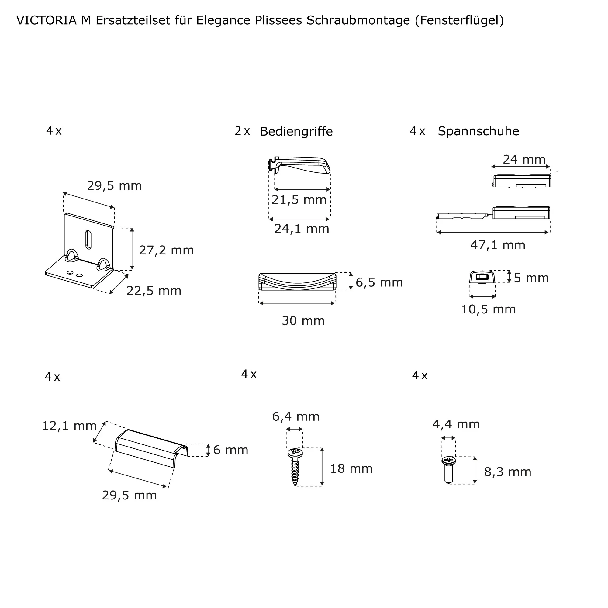 | Produktbezeichnung: | Ersatzteilset für Elegance Plissees | Schraubmontage (Fensterflügel) |