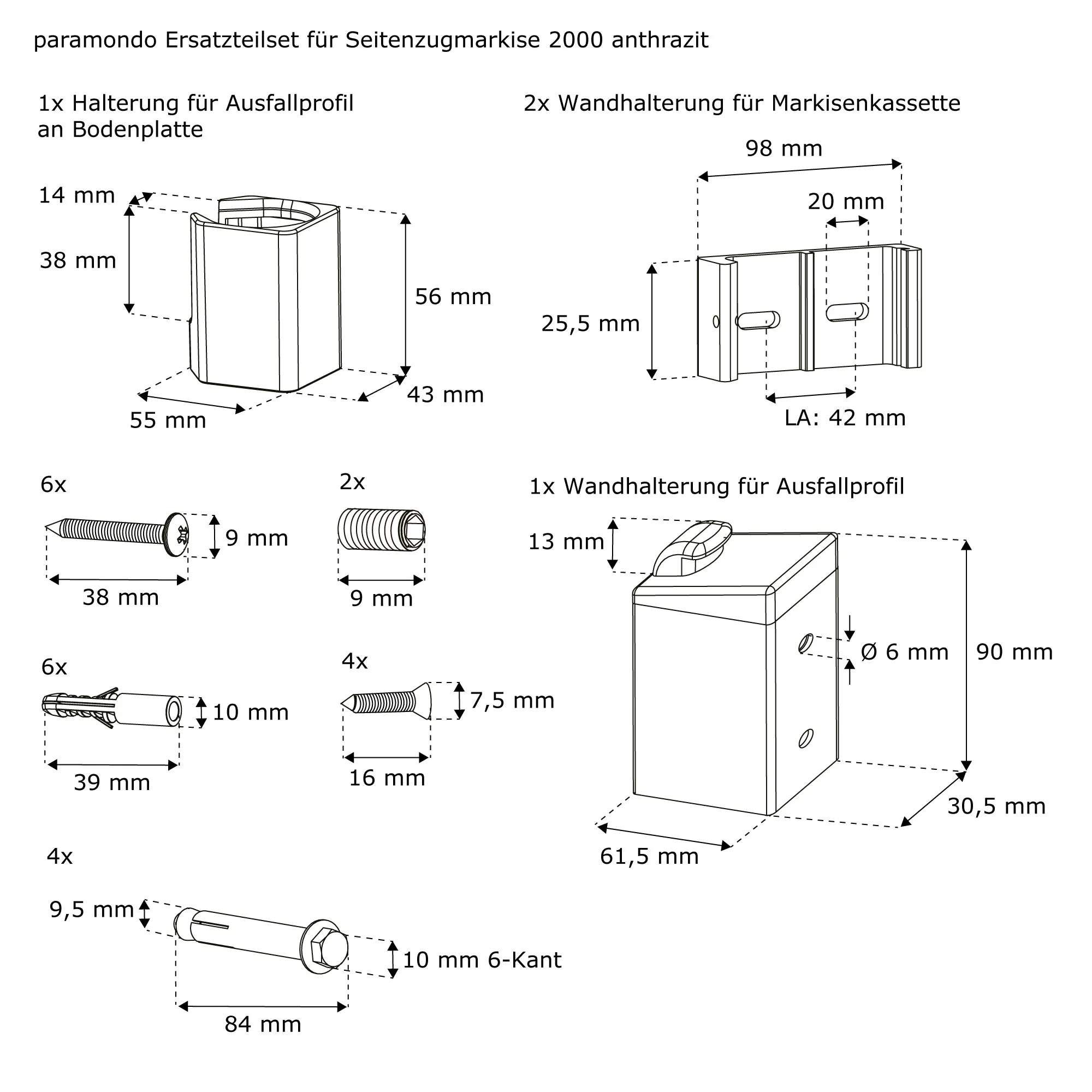 | Produktbezeichnung: | Ersatzteilset für Seitenzugmarkise 2000 | anthrazit |