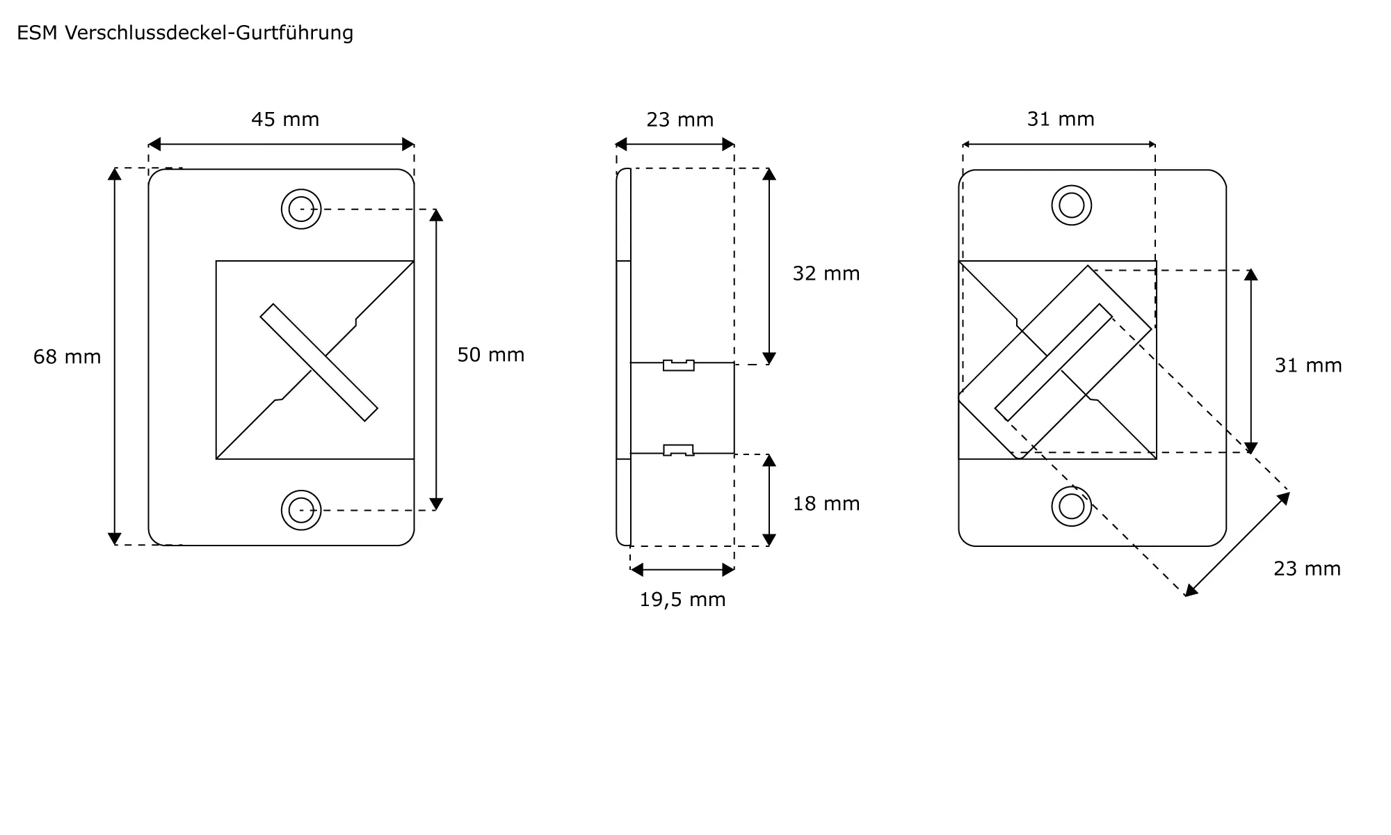 - Winkel des Gurtführungsschlitzes in verschiedenen Varianten möglich (gerade - 90° - 45°)