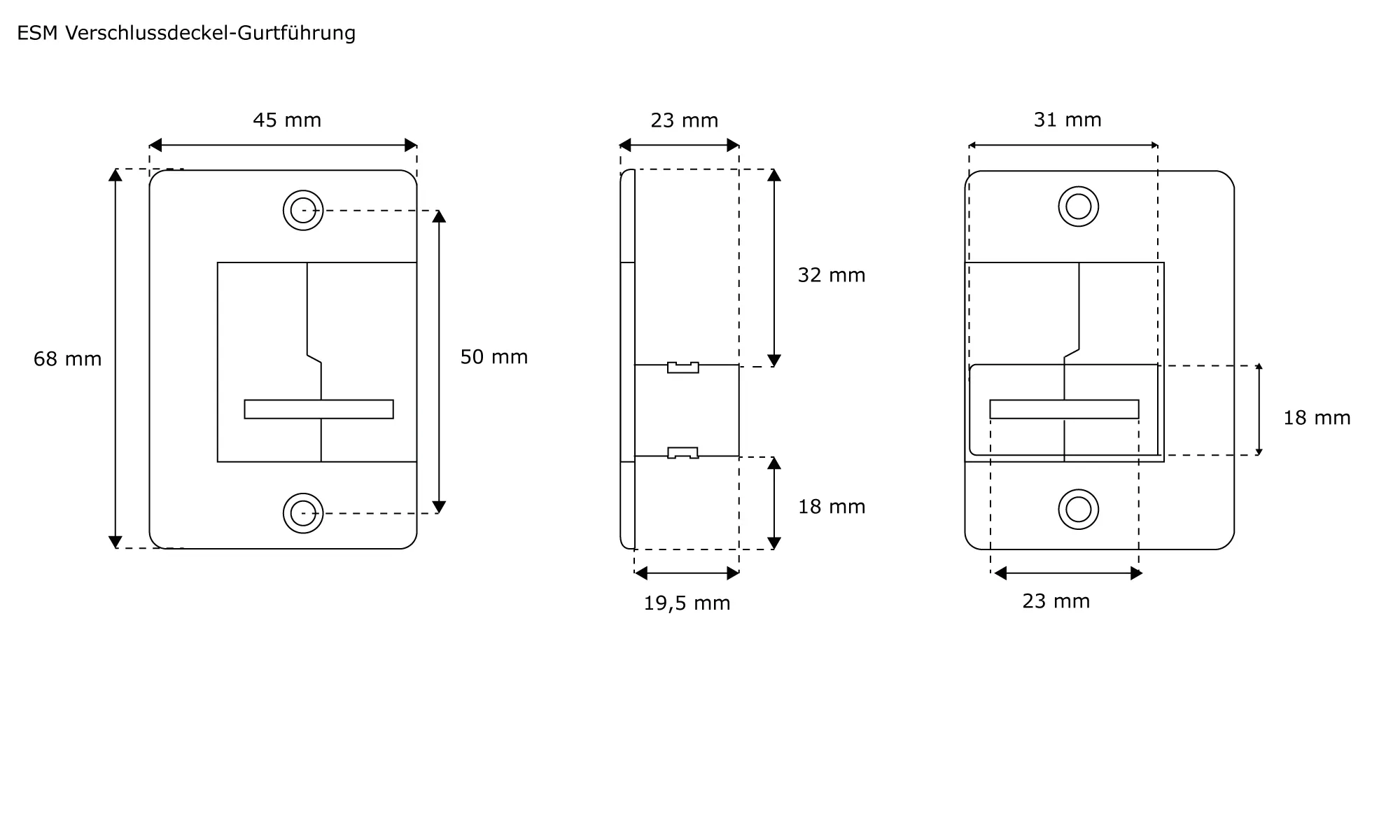 - Winkel des Gurtführungsschlitzes in verschiedenen Varianten möglich (gerade - 90° - 45°)