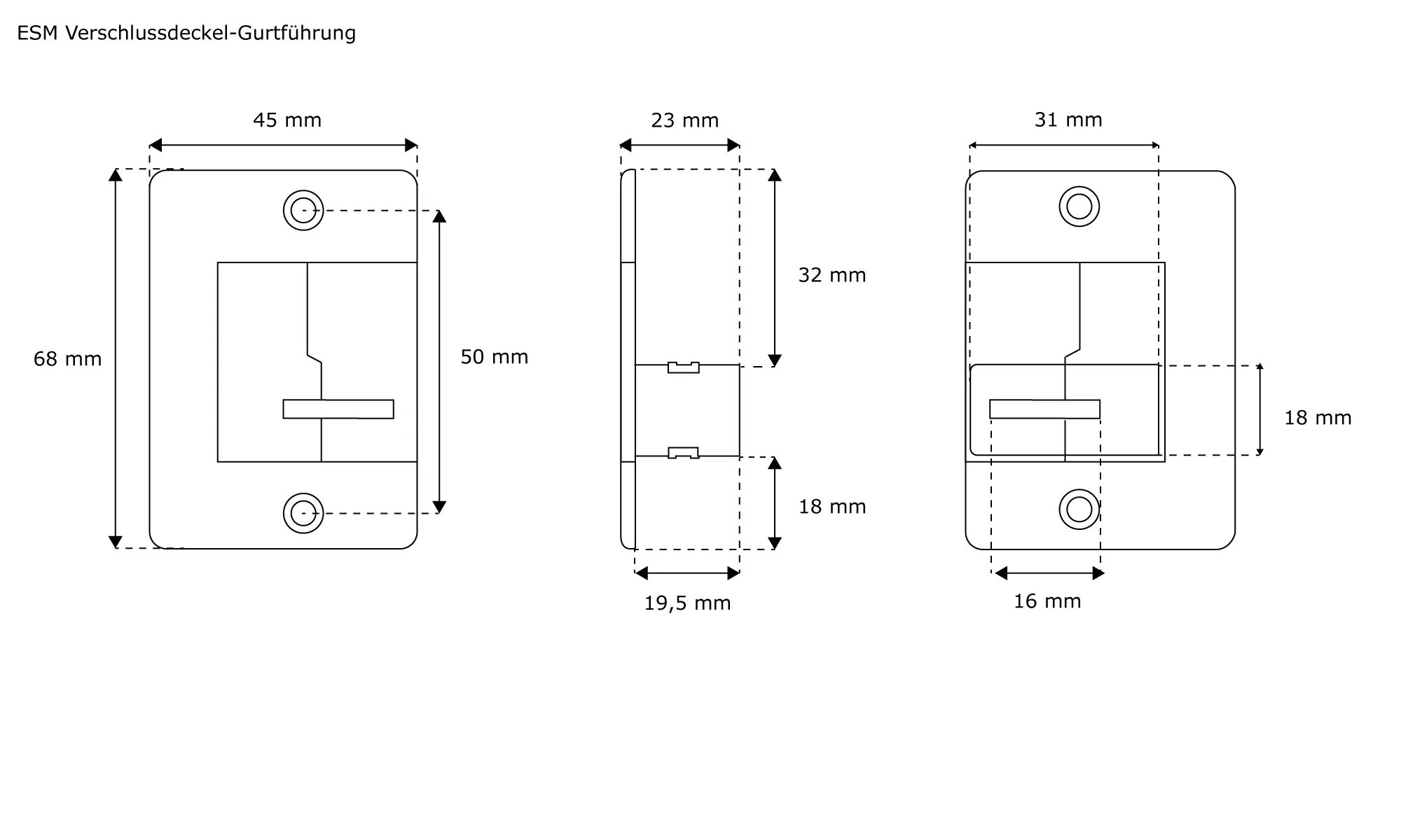 - Winkel des Gurtführungsschlitzes in verschiedenen Varianten möglich (gerade - 90° - 45°)
