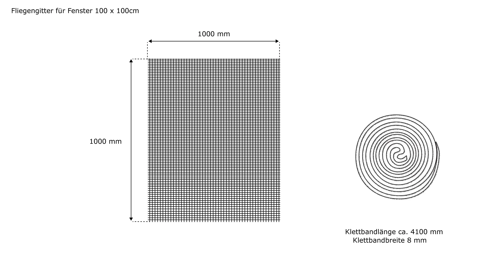 | Produktbezeichnung: | Fliegengitter für Fenster | 100 x 100 cm, weiß |