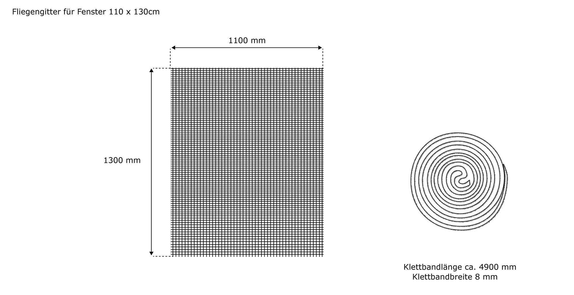 | Produktbezeichnung: | Fliegengitter für Fenster | 110 x 130 cm, weiß |