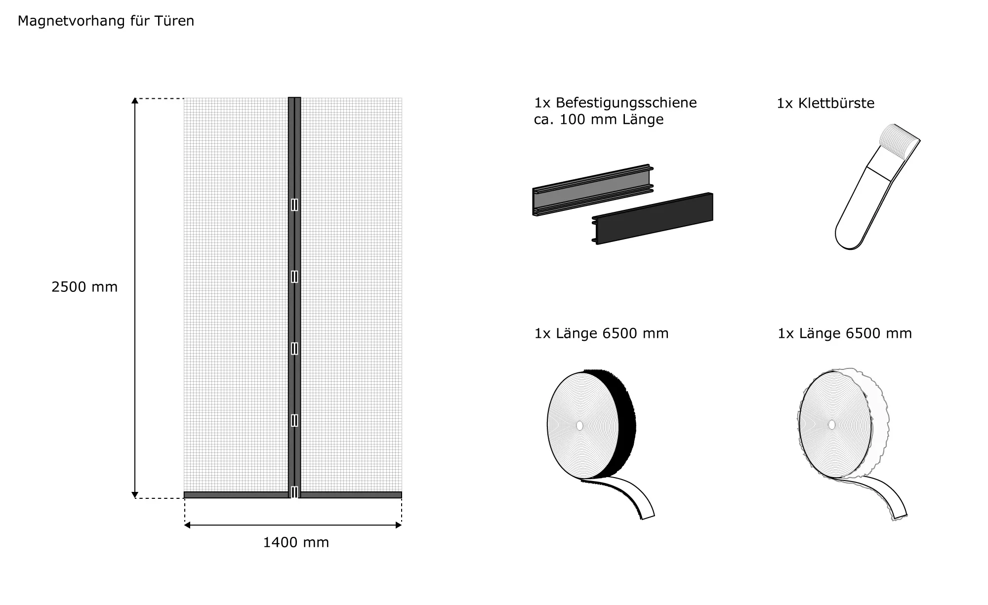 | Produktbezeichnung: | Fliegengitter-Magnetvorhang für Türen | 140 x 250 cm, weiß |