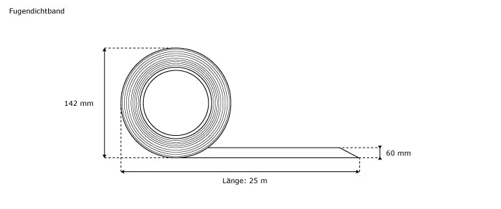 | Produktbezeichnung: | Fugendichtband / Klebeband | 25 m Länge / 60 mm Breite |