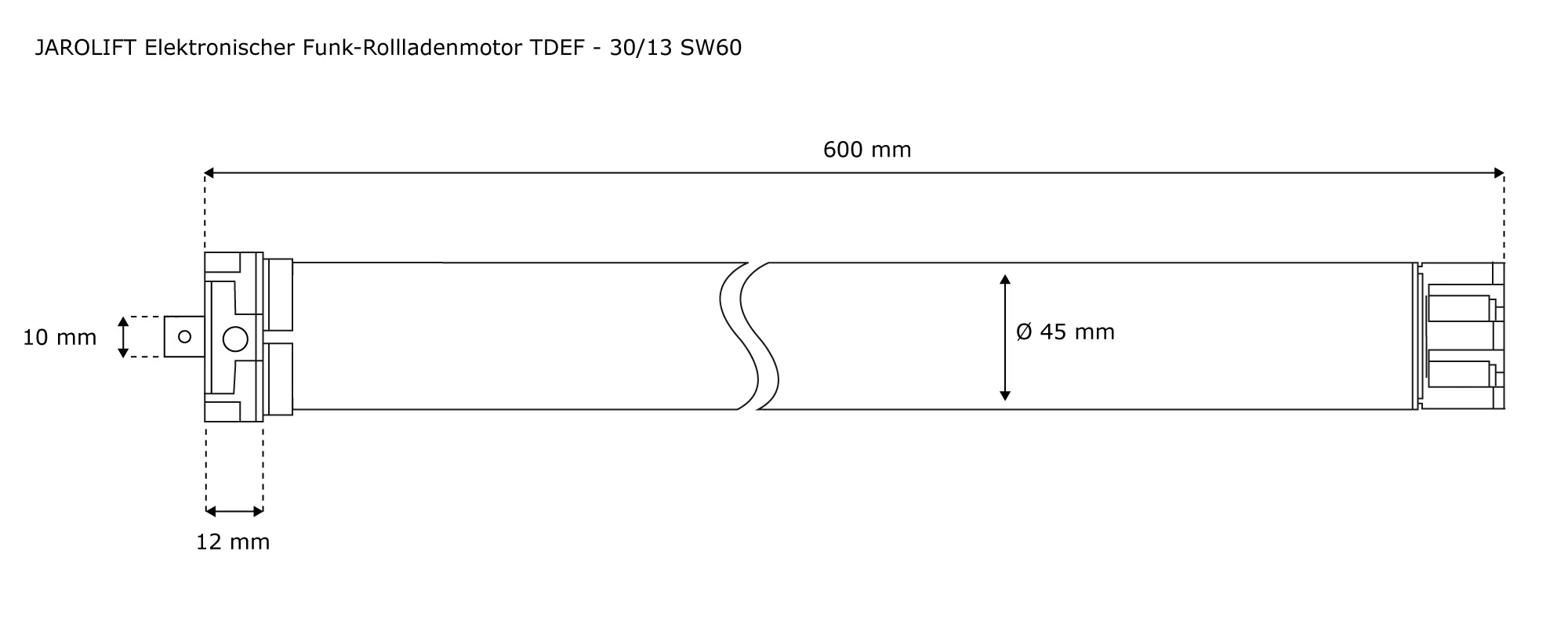 | Produktbezeichnung: | Funk-Rollladenmotor TDEF | TDEF 30/13 (30 Nm / SW60) |