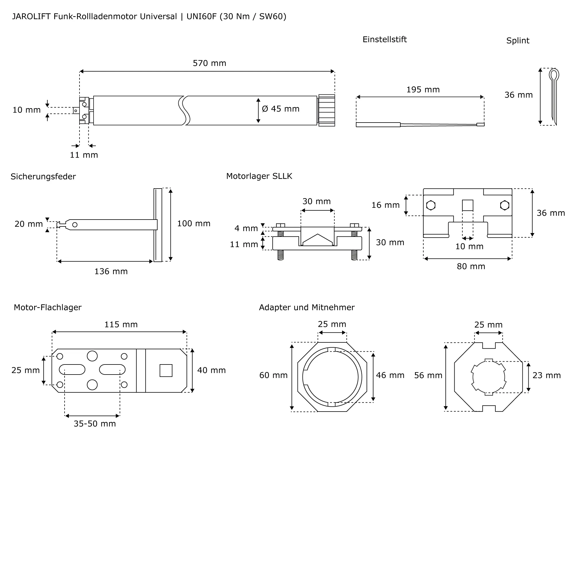 | Produktbezeichnung: | Funk-Rollladenmotor Universal | UNI60F (30 Nm / SW60) + Altbau-Wellenset 2 |