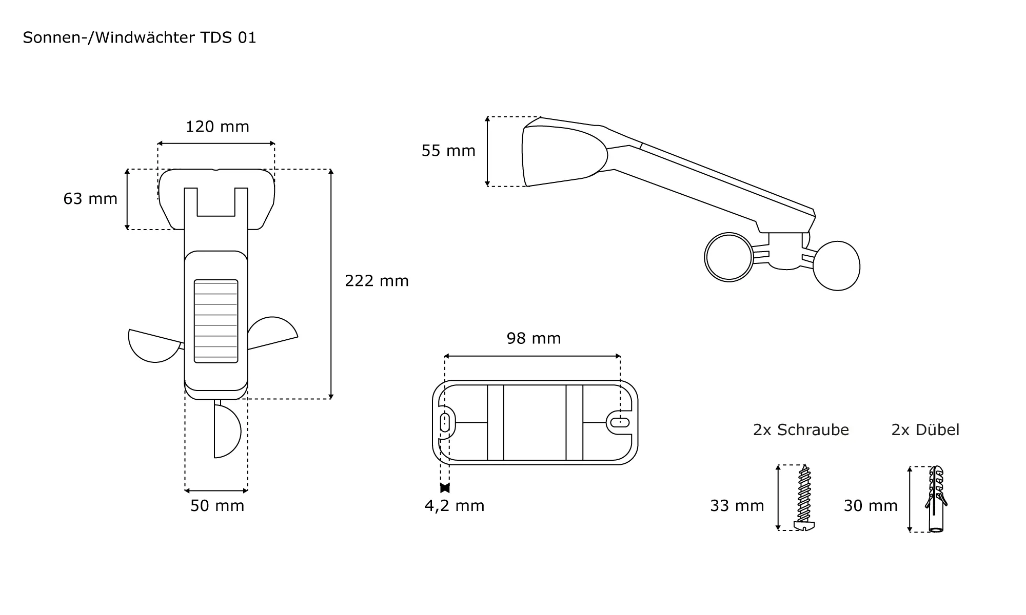 | Produktbezeichnung: | Funk Sonnen- und Windwächter TDSW-01 | Solarbetrieben / weiß |