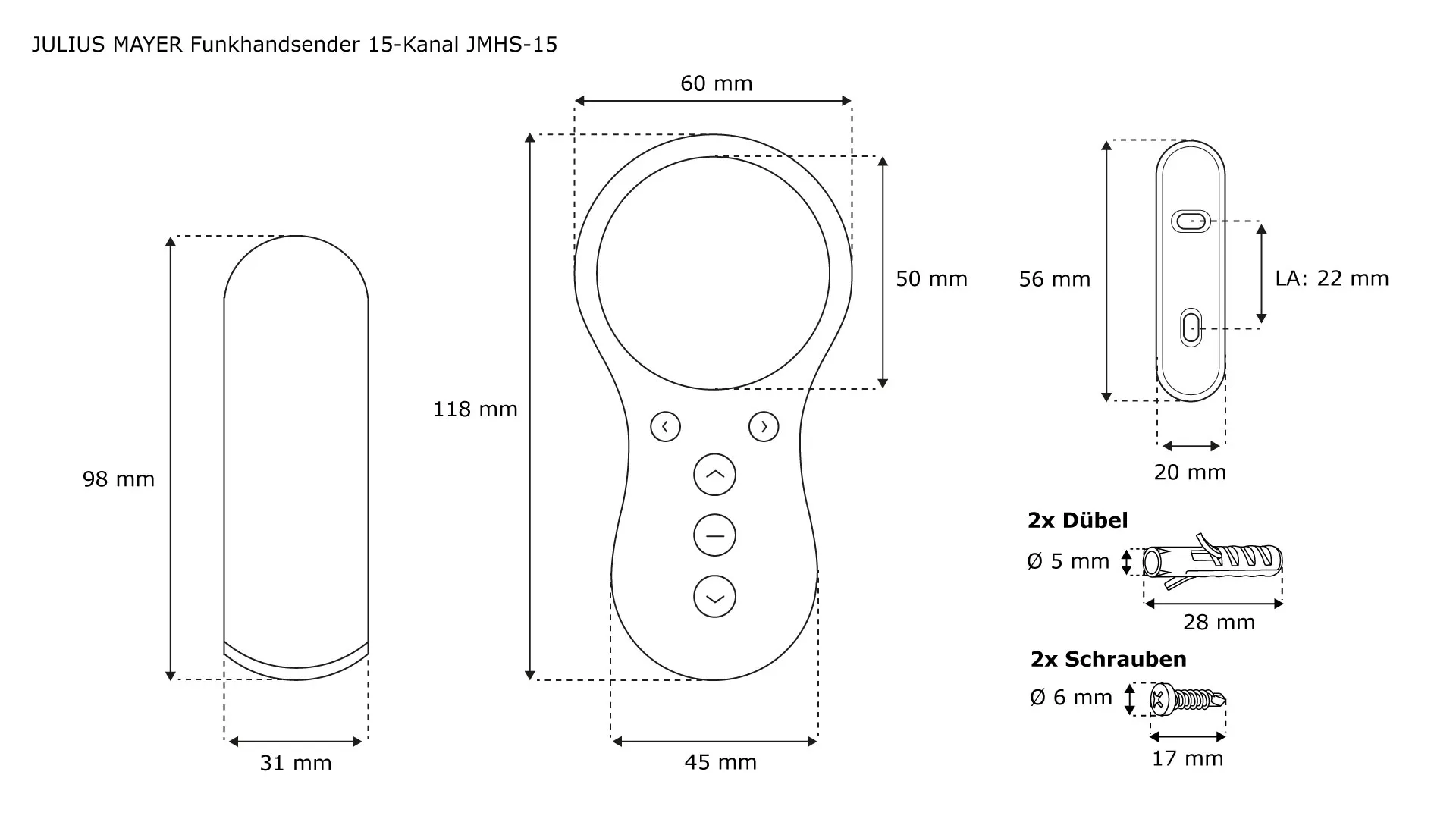 Unsere Funkhandsender sind kompatibel mit verschiedensten Funkgeräten von JULIUS MAYER. Steuere bequem deinen JM35-F & JM45-F Funkmotor, den externen Funkempfänger JMFEA und die Zeitschaltuhr JMFT-1 mit unseren Handsendern. Dank einfacher Einlernphase der Fernbedienung ist sie in kürzester Zeit verwendbar. Alle Modelle liegen gut in der Hand und bieten besten Komfort aufgrund der praktischen Magnethalterung zur Aufbewahrung.