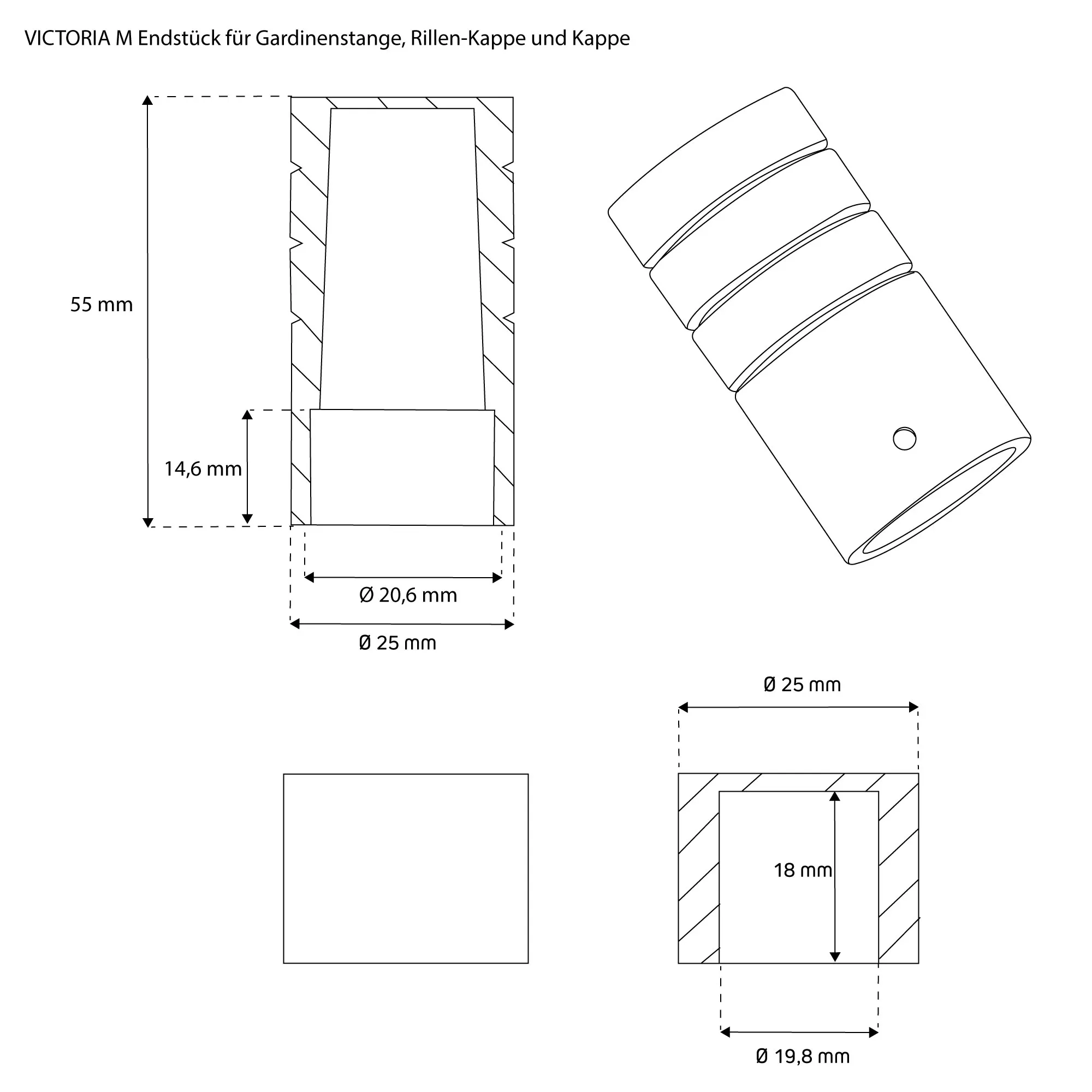 - Individuelles Design: Wählen zwischen verschiedenen Endkappen-Designs – ob einfache Endkappe, stilvolle Rillenkappe oder elegante Kugelform.