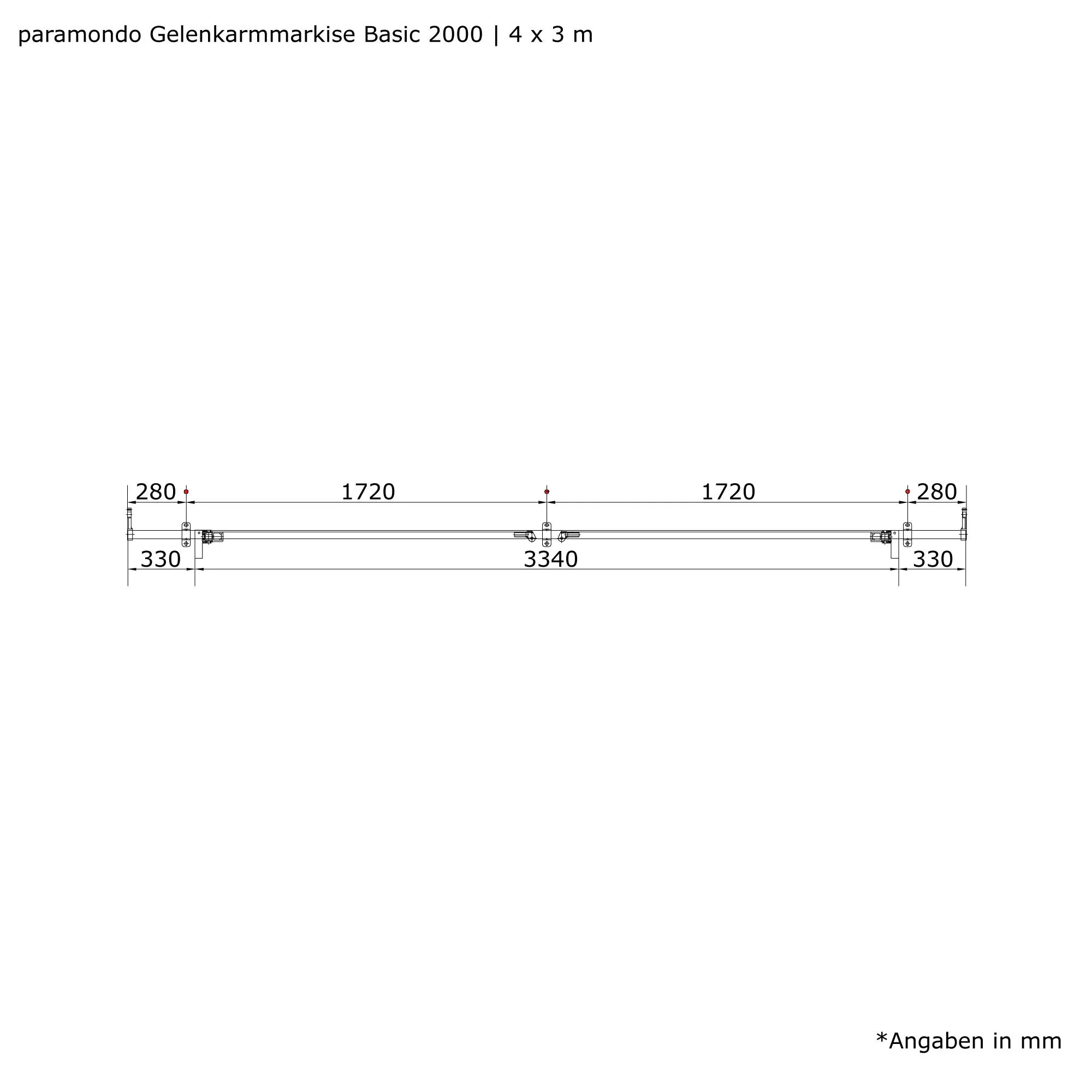| Produktbezeichnung: | Gelenkarmmarkise Basic 2000 | 4 x 3 m / Gestell: weiß / Stoff: Uni, weinrot |