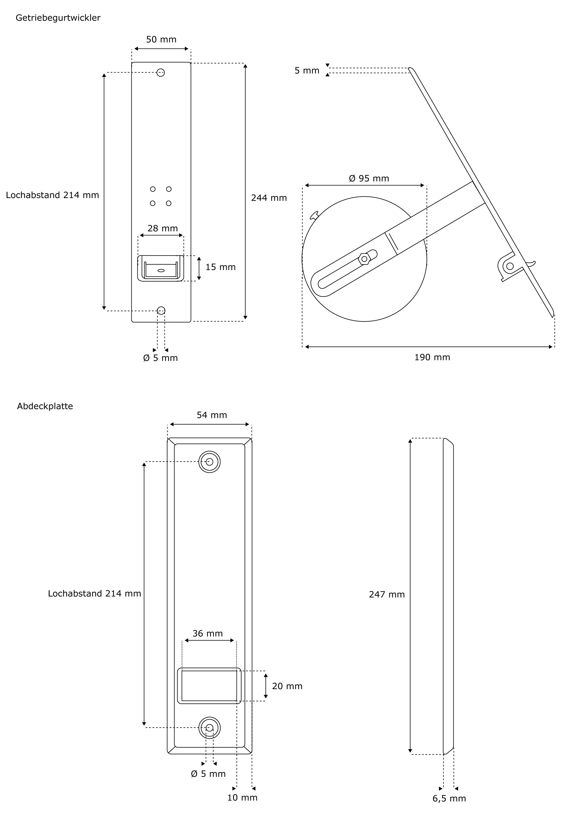Die im Lieferumfang ebenfalls enthaltene Abdeckplatte, passend zum Lochabstand des Getriebe-Gurtwicklers, ist aus hochwertigem Kunststoff in der Farbe weiss.
