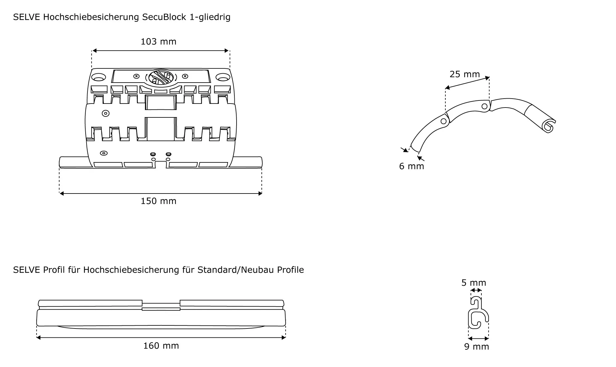 | Produktbezeichnung: | Hochschiebesicherung SecuBlock | 1-gliedrig + Profil f. Standard / Neubau Rollladenprofile |