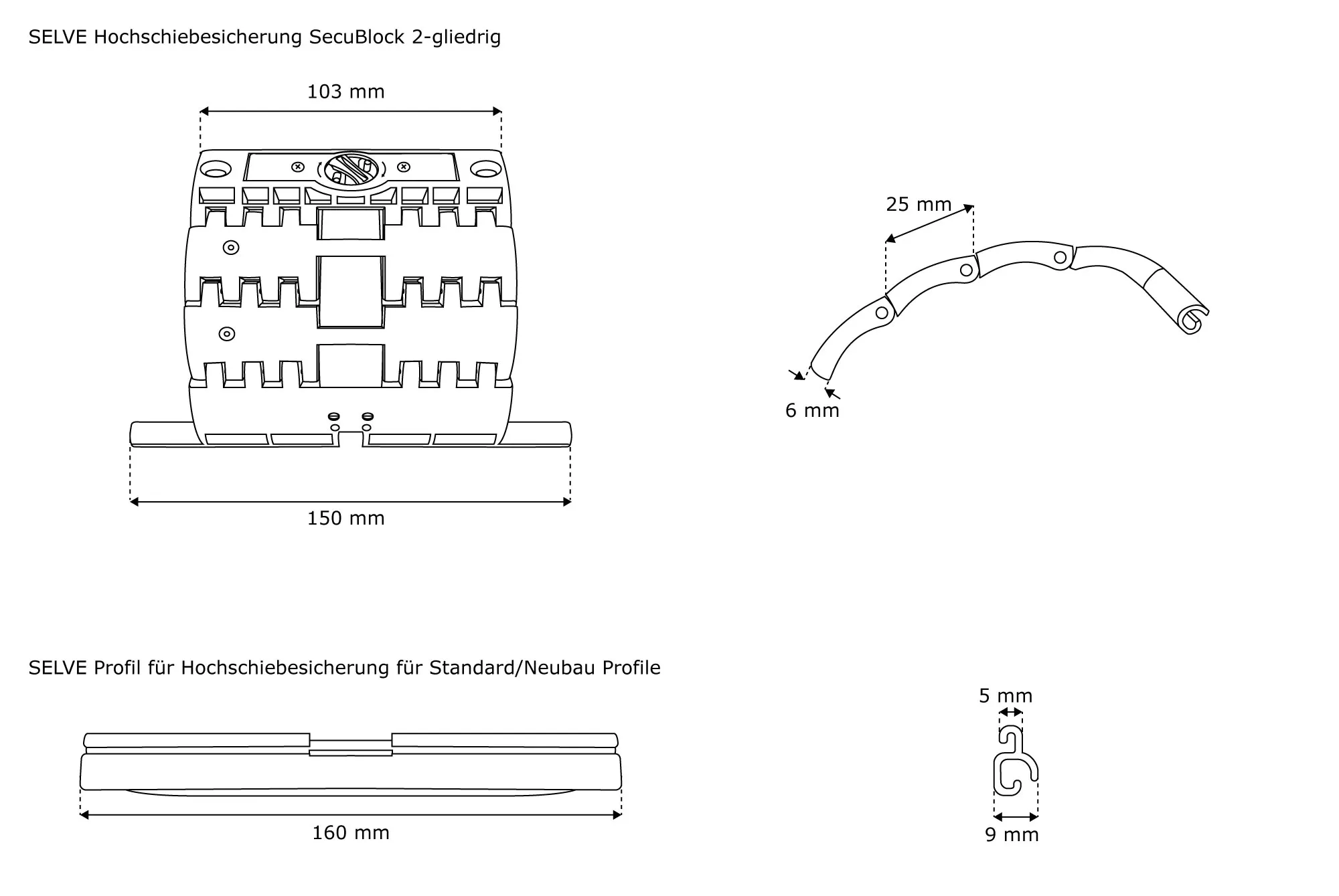 | Produktbezeichnung: | Hochschiebesicherung SecuBlock | 2-gliedrig + Profil f. Standard / Neubau Rollladenprofile |