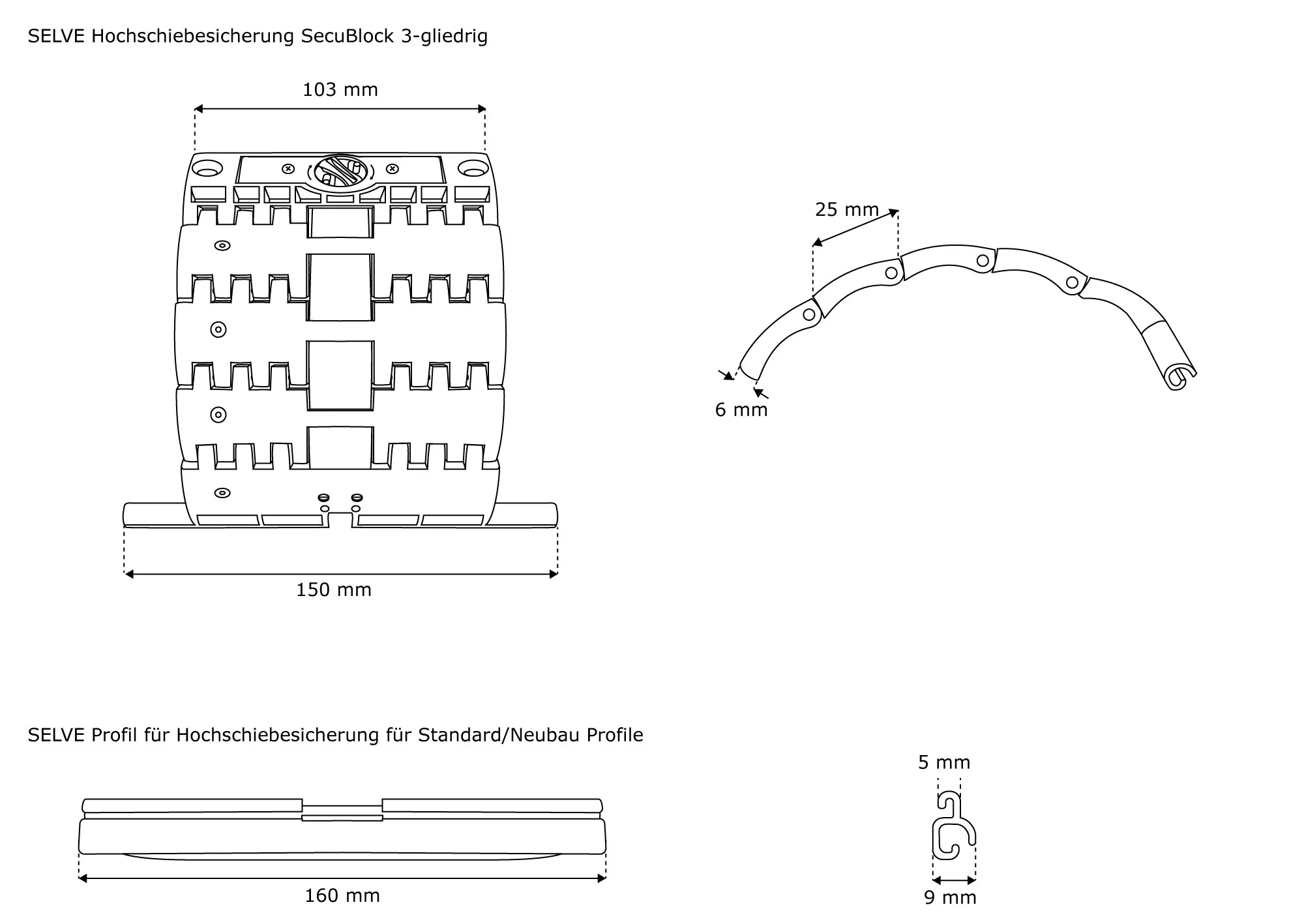 Produktbezeichnung: Hochschiebesicherung SecuBlock | 3-gliedrig + Profil f. Standard / Neubau Rollladenprofile