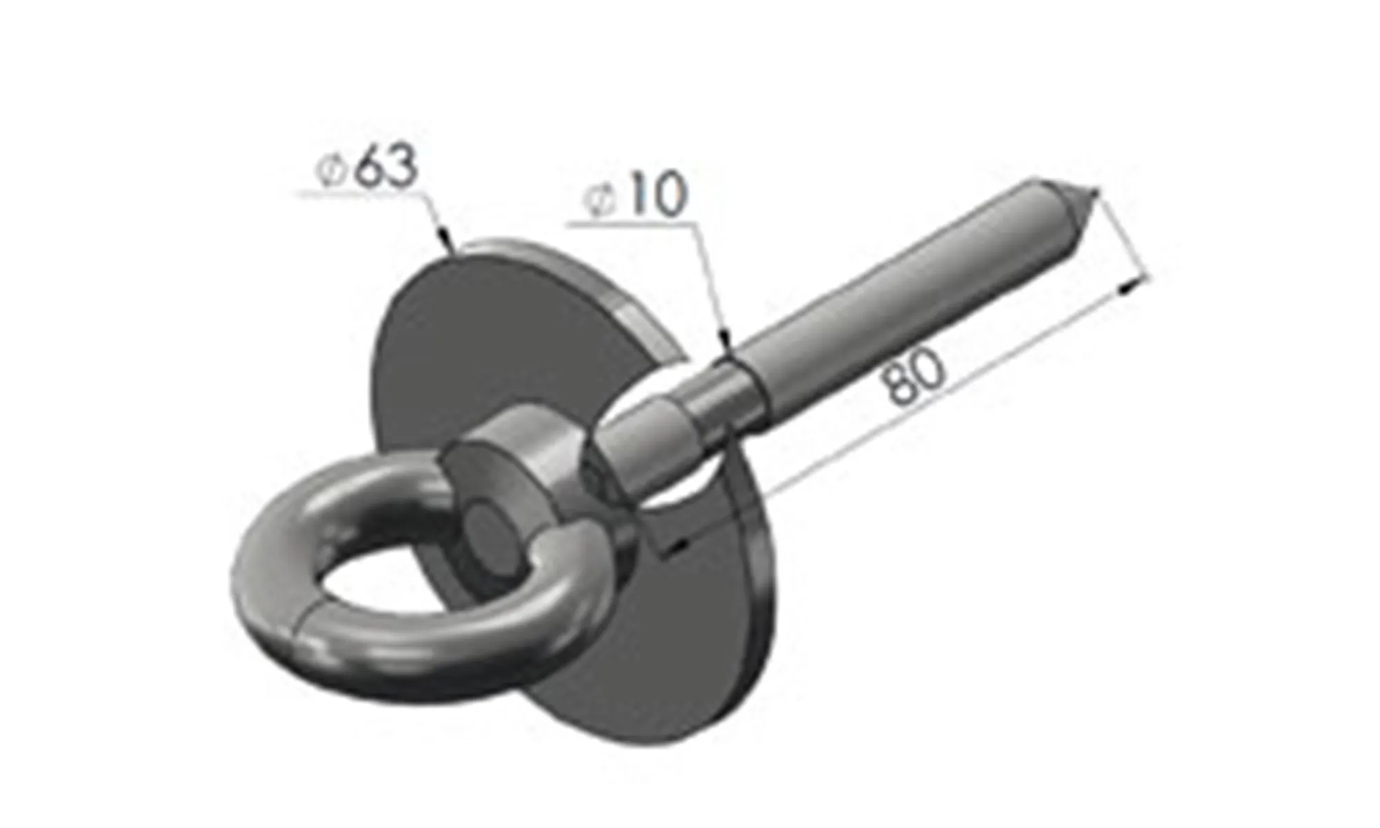 Die Höhe der Öse beträgt 45 mm. Das Gewinde hat einen Durchmesser von 10 mm und eine Länge von 80 mm.