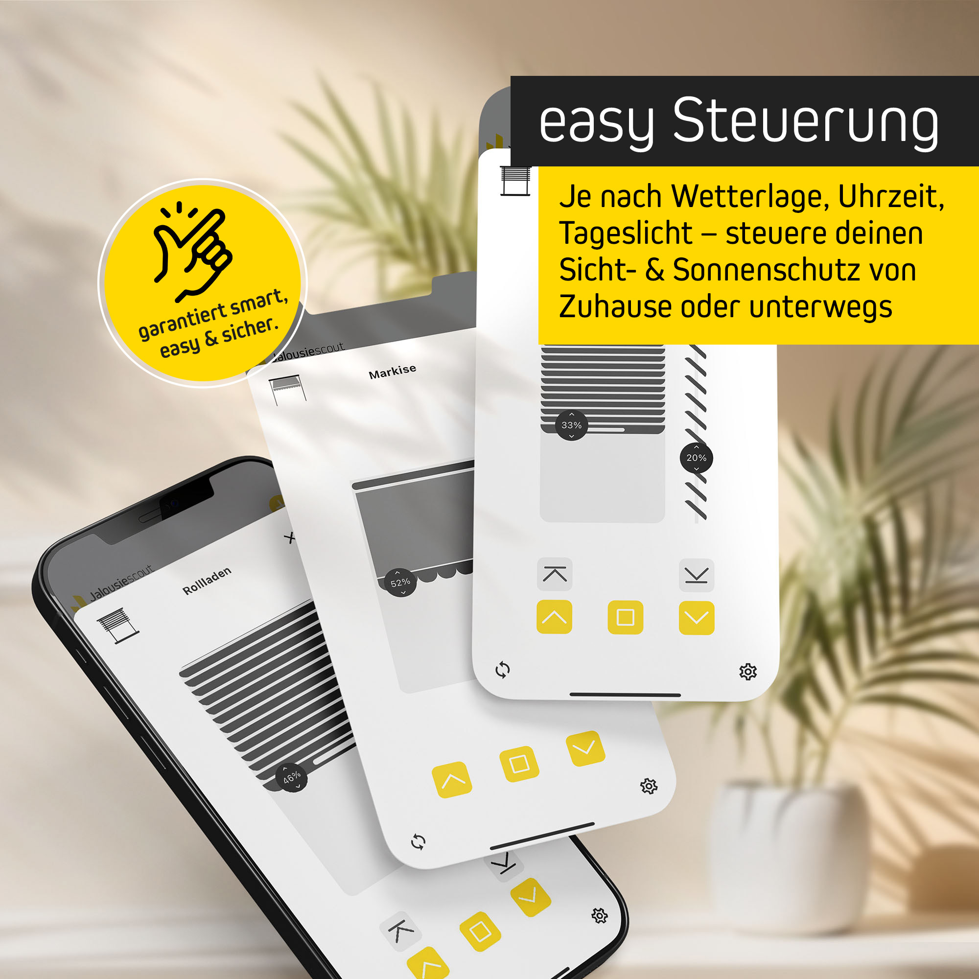 - Per App steuerbar mit der Jalousiescout Smart Home Bridge JS