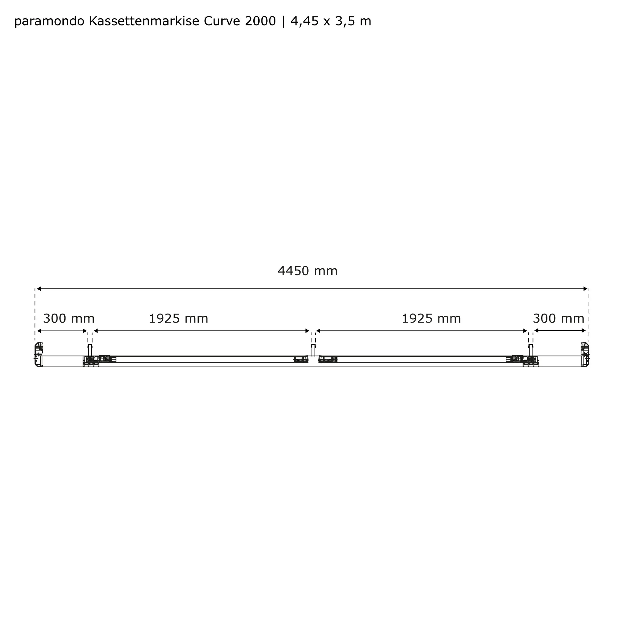 | Produktbezeichnung: | Kassettenmarkise Curve 2000 | 4,45 x 3,5 m / Gestell: weiß / Stoff: Uni, creme-weiß |