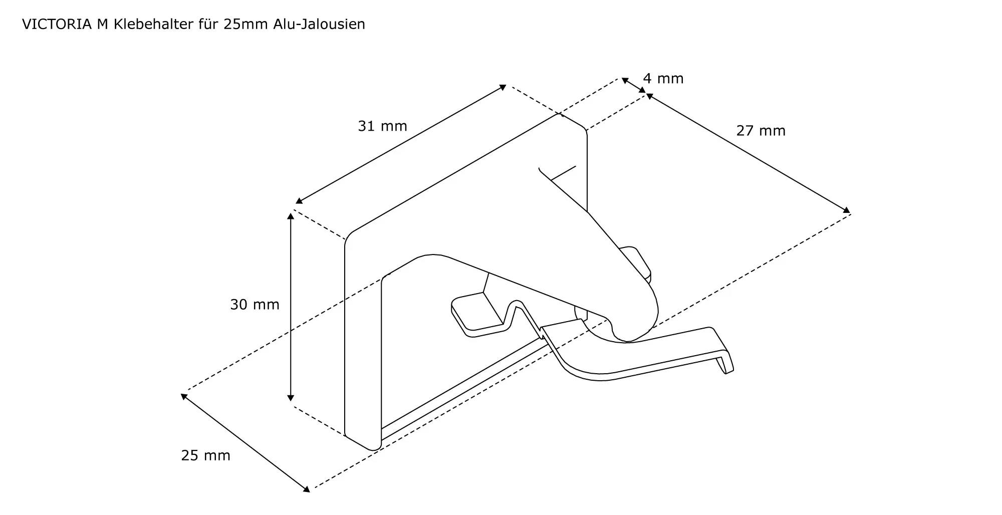 - Klebehalter, passend für 25 mm Alujalousien in Standardgrößen oder nach Maß
