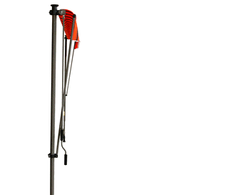 Die 120 cm lange Kurbel sorgt für ein schnelles Ein- und Ausfahren. Die Bedienseite ist – von außen gesehen – links. Du kannst die JAM 2000 einfach komplett ein- und ausfahren, indem du die beiden Feststellschrauben der Fallarme per Hand löst.