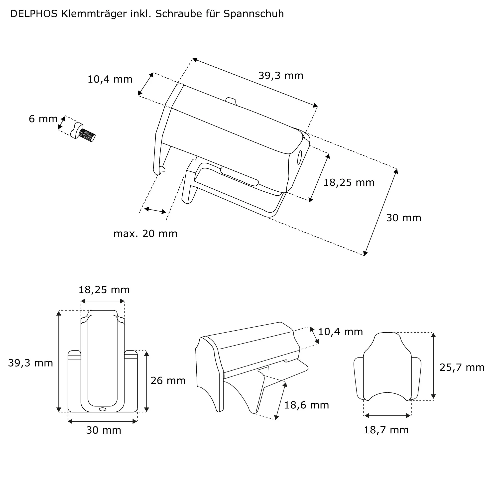 | Produktbezeichnung: | Klemmträger inkl. Schraube für Spannschuh | weiß |