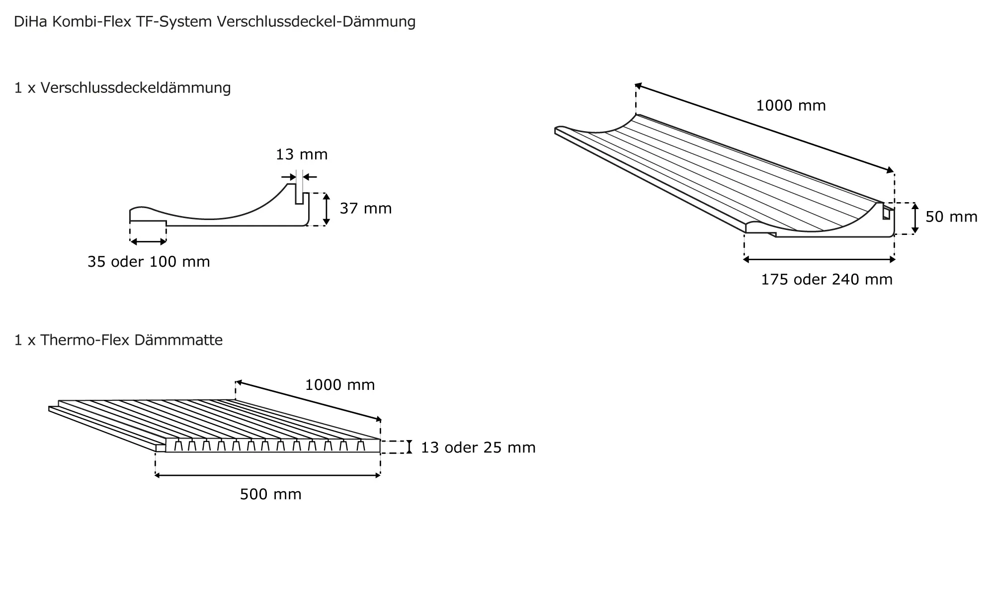 | Produktbezeichnung: | Kombi-Flex TF-System Verschlussdeckel-Dämmung | 100 x 24,0 cm + TF-Matte 13 mm / 100 x 50 cm |