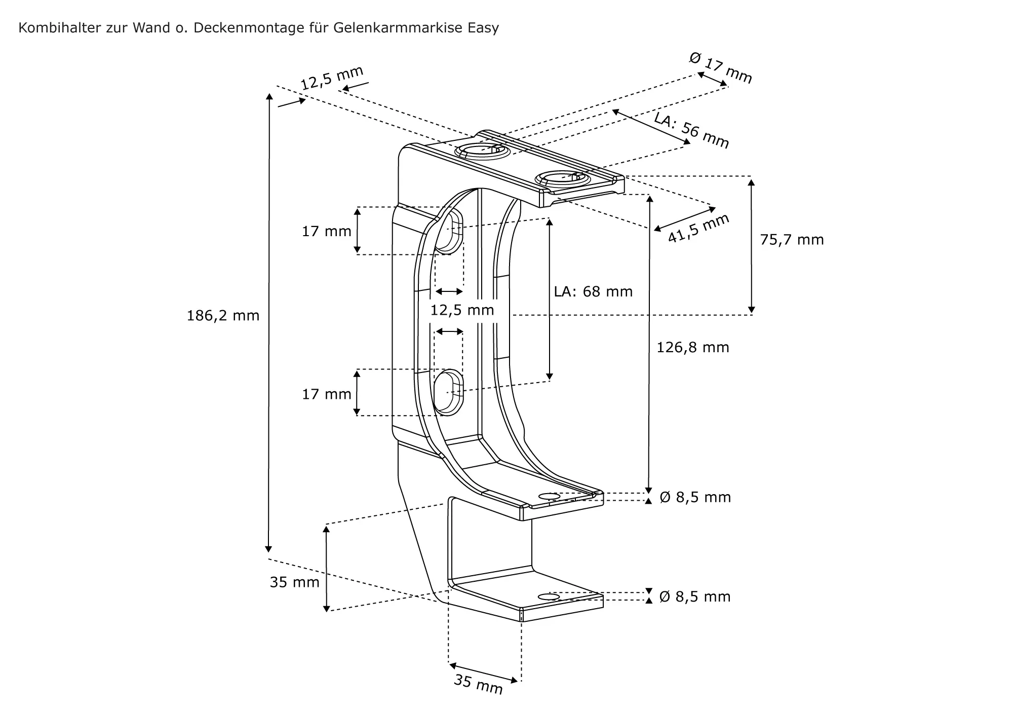 | Produktbezeichnung: | Kombihalter zur Wand o. Deckenmontage für Gelenkarmmarkise Easy | weiß |