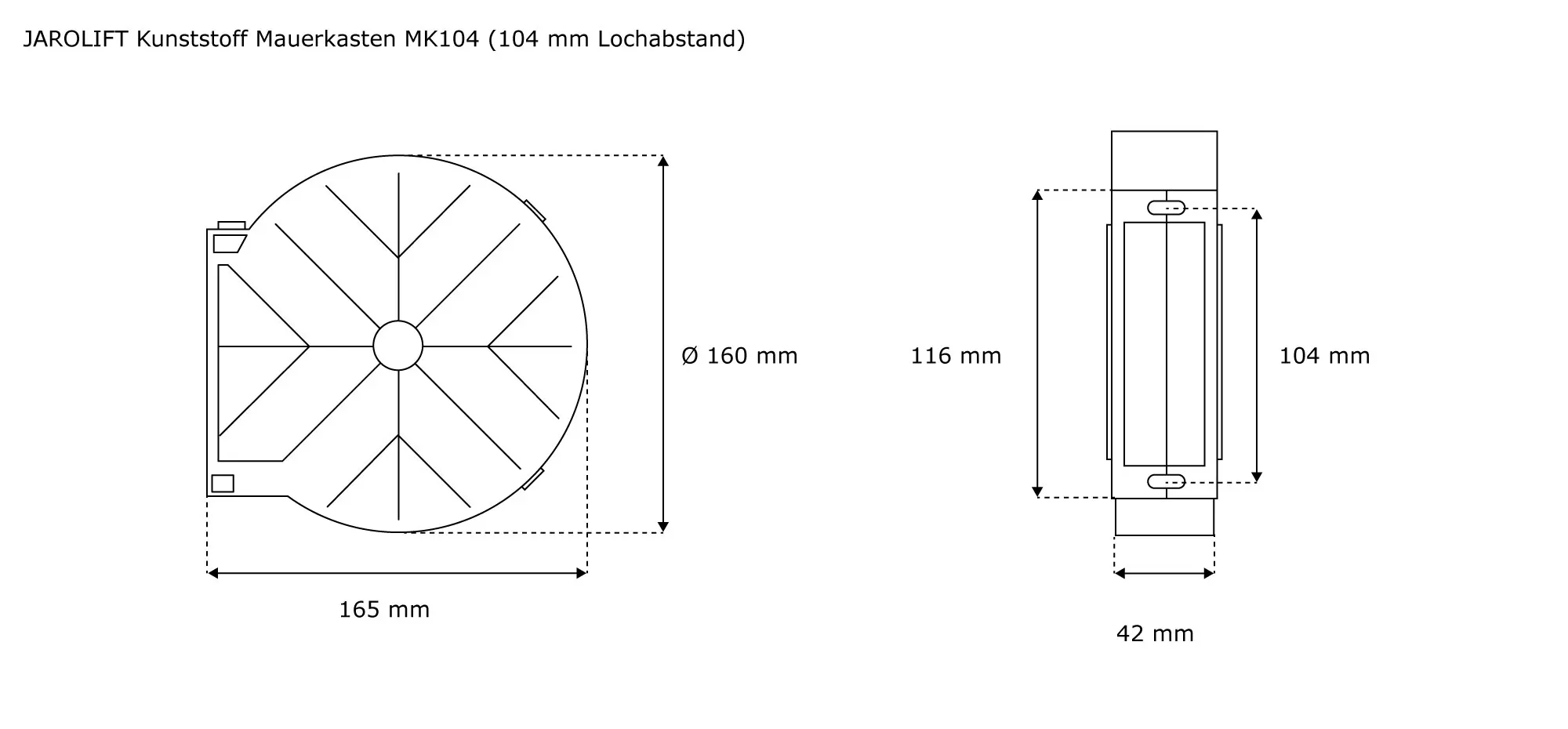 Du erhältst hier den Mauerkasten MK aus dem Hause JAROLIFT, geeignet für Einlaß- und Getriebegurtwickler für verschiedene Lochabstände und Gurtbreiten.