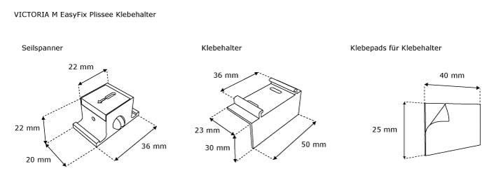 Die Klebehalterungen zeichnen sich auch dadurch aus, dass sie leicht zu montieren und rückstandslos zu entfernen sind. Achten Sie lediglich darauf, dass der Untergrund für die Halter glatt und frei von Fett oder Schmutz ist. So haften die Klebepads am besten. Die hervorragende Klebequalität und das bewährte System der Halter sorgen für optimalen Halt auf dem Fensterglas. Im Lieferumfang enthalten sind 4 Klebehalterungen, 4 Klebepads und 4 Seilspanner sowie eine Montageanleitung.
