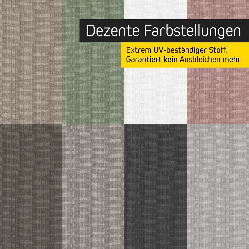 - Extrem UV-beständige Stoffe, garantiert kein Ausbleichen