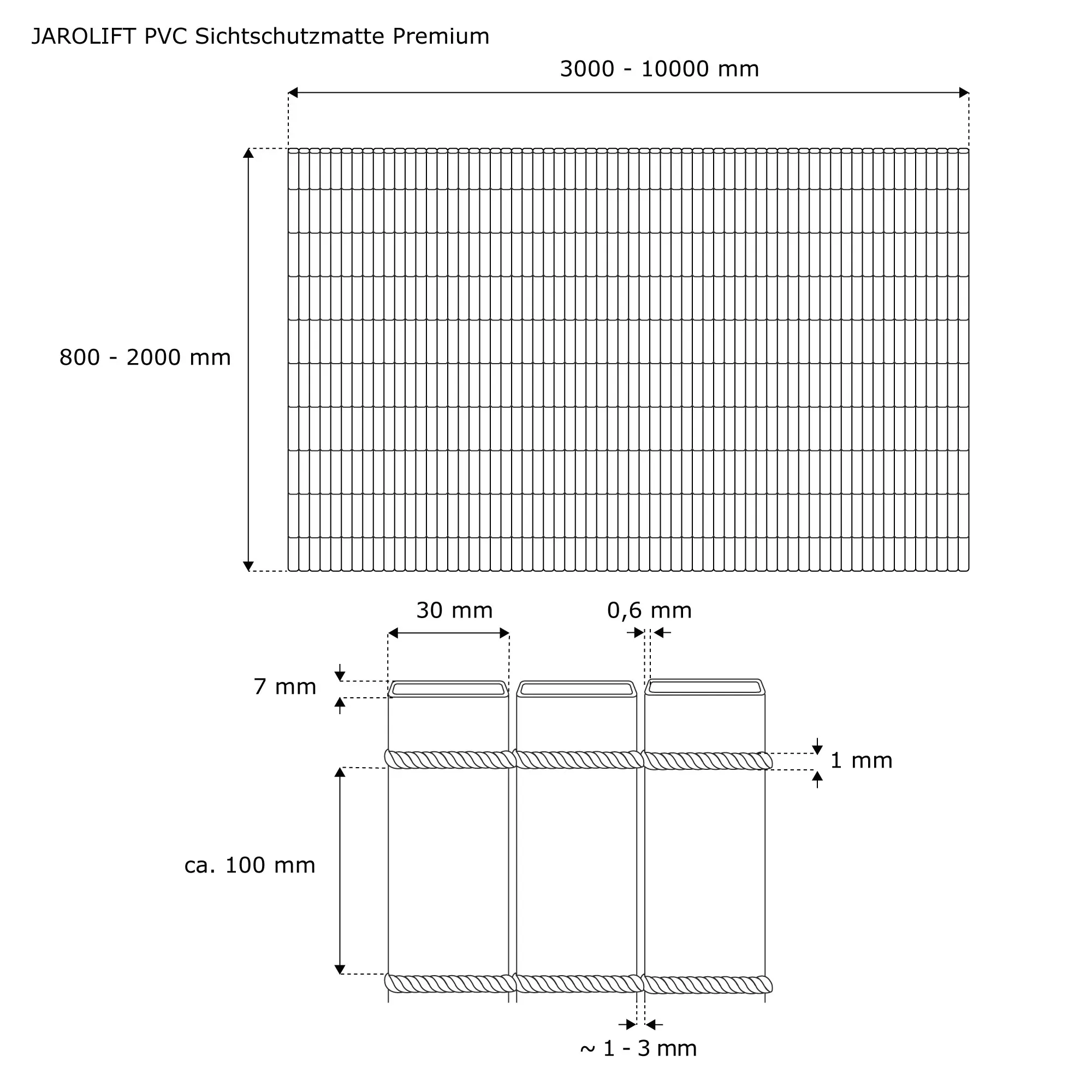 - Made in EU - bewährte Qualität von JAROLIFT: Die Sichtschutzmatten werden in Spanien hergestellt. Mit 30 mm sind die PVC-Rohre breiter als bei vielen anderen Modellen und knicken weniger leicht ab. Sie sind besonders eng verknotet und zu 100% verklebt.